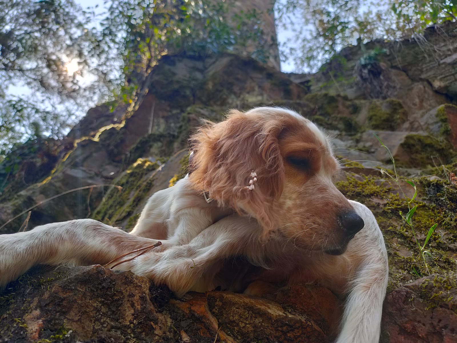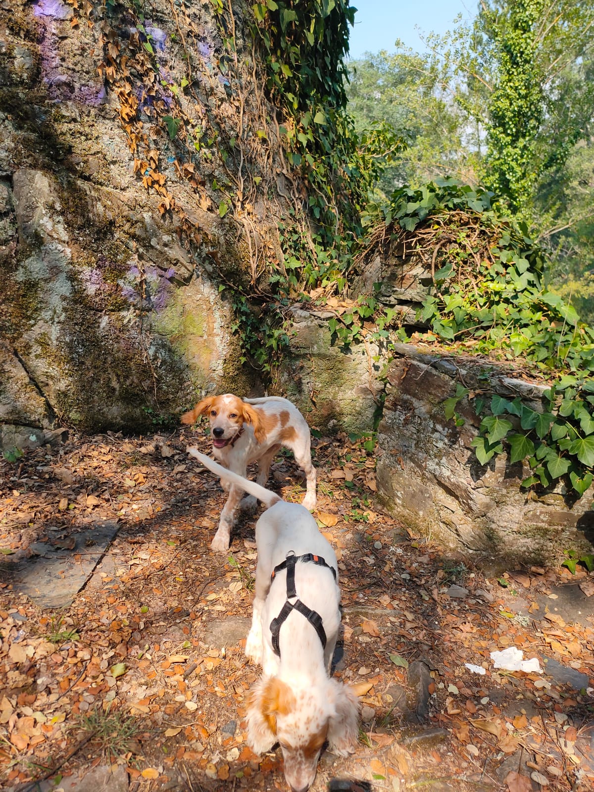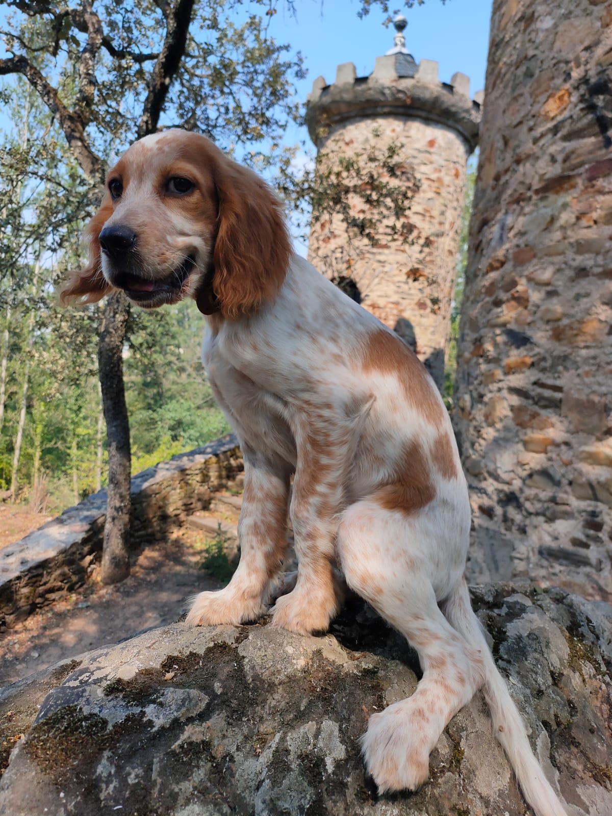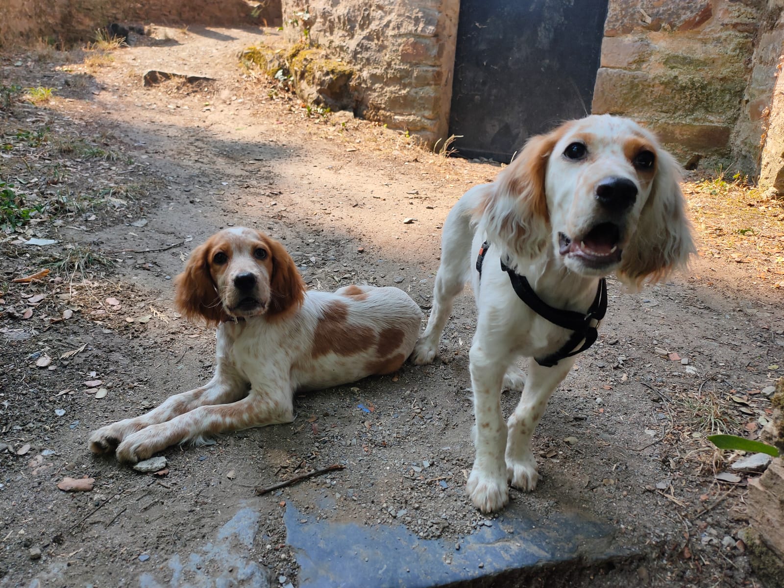 Akela, seine beiden Brüder und eine Schwester wurden unseren nordspanischen Tierschutzkollegen von einem Jäger übergeben, der sie nicht versorgen konnte. Die muntere Bande wurde auf 2 Pflegestellen aufgeteilt. Akela lebt mit seinem Bruder Nikai in einer Pflegestelle. Die beiden dürfen die Pflegefamilie bei den Ausflügen durch einen Weinberg begleiten und haben sichtlich Spaß dabei, wie die Videos zeigen. Der kleine Setterrüde verdankt seinen ungewöhnlichen Namen dem "Dschungelbuch" und wurde nach dem Leitwolf Akela genannt.