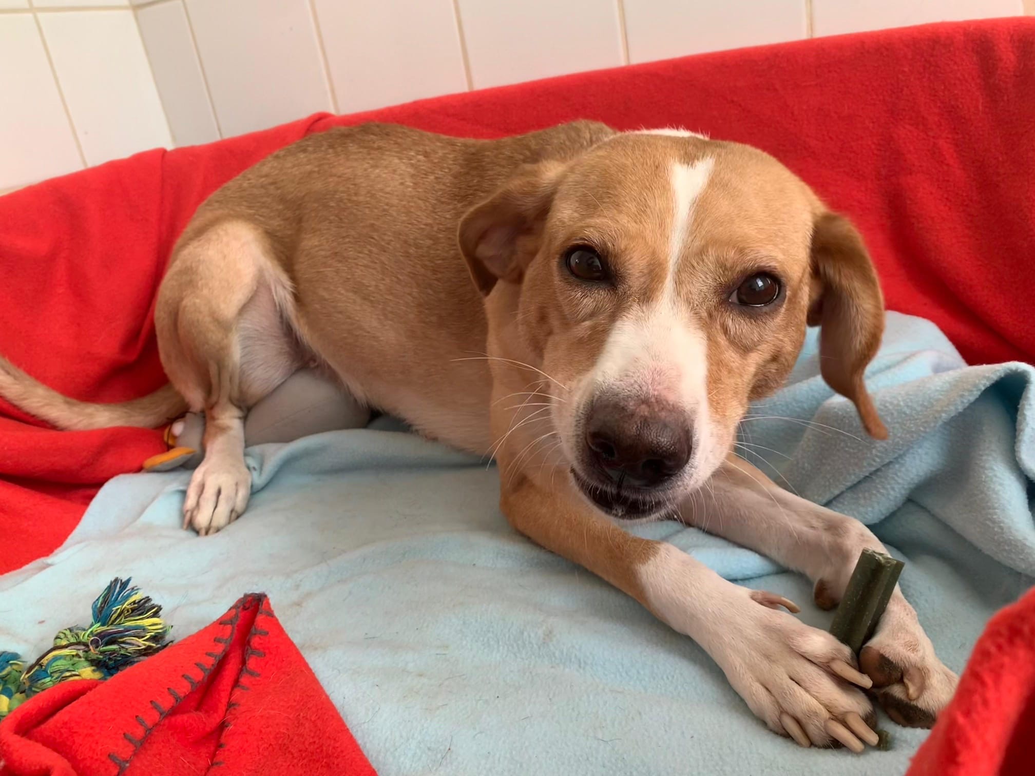 Jahrelang eingesperrt, nie das Tageslicht gesehen: Man mag sich gar nicht vorstellen, wie furchtbar Arabellas bisheriges Leben verlaufen ist. Warum tut man einem Lebewesen so etwas an? Aber nun blicken wir nach vorn und freuen uns erst einmal, dass Arabella und 3 weitere Hündinnen, die mit ihr gemeinsam von diesem schrecklichen Ort gerettet werden konnten, nun in Sicherheit sind. Unsere spanischen Kolleginnen kümmern sich liebevoll um Arabella, die leider Leishmaniose positiv ist, und umsorgen sie mit Futter, Medizin und – so gut es eben in einem Shelter geht – mit Streicheleinheiten. Von hier aus darf sich die schüchterne, aber zugewandte Arabella hoffentlich bald aufmachen in ihr Zuhause bei lieben und verständnisvollen Menschen hier in Deutschland.