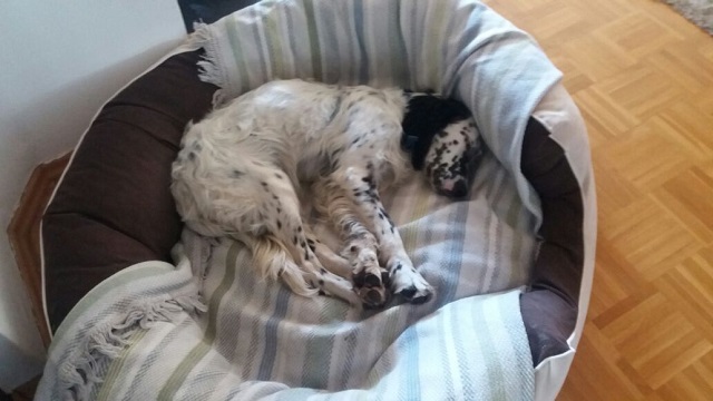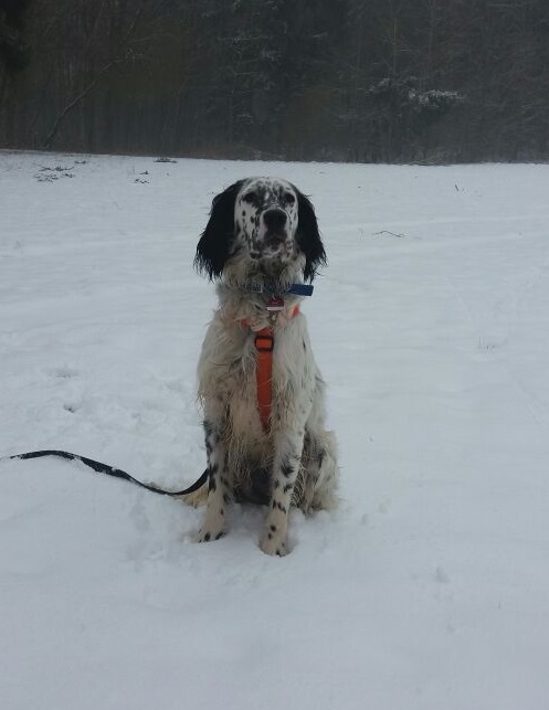 Das Settermädel ist am 18.03.2017 geboren und hat eine Schulterhöhe von ca. 50 cm. Rassebedingt rechnen wir damit, dass sie Jagdtrieb hat, aber bei so einer jungen Hündin müsste sich das mit dem entsprechendem Training in die richtigen Bahnen lenken lassen.