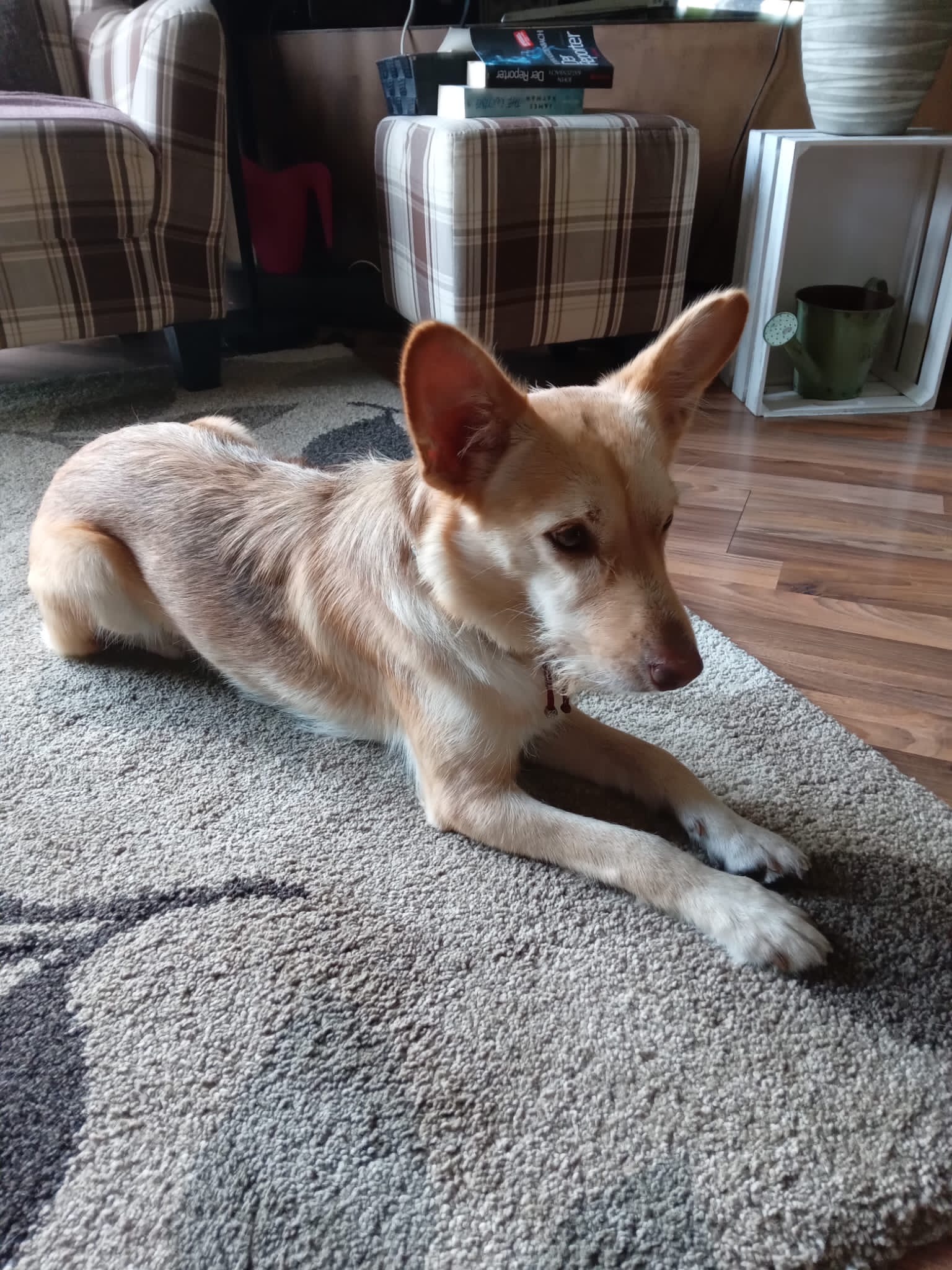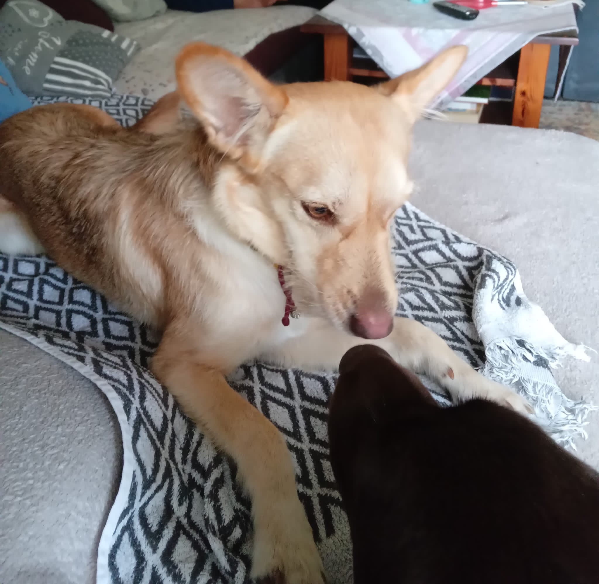 Bela ist auf ihrer Pflegestelle sehr schnell aufgetaut🙂 Kleine Unsicherheiten gegenüber Fremden gibt es noch, aber in der Regel siegt die Neugier. Wenn dann noch Leckerchen im Spiel sind, ist das Eis ganz schnell gebrochen.