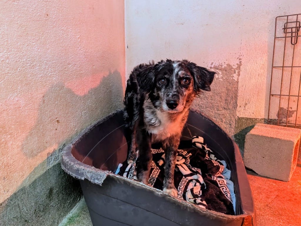 Belle – ängstliche Hündin sucht verständnisvolle und erfahrene Menschen! Die hübsche Collie-Mix-Dame Belle lebte mit ihrem Partner Bodhi jahrelang auf der Straße, bis unsere eifrigen Kolleginnen die beiden endlich sichern konnten. Jahr für Jahr brachte Belle zuvor Welpen zur Welt, zuletzt noch im Shelter, denn sie war hochschwanger, als sie endlich aufgegriffen werden konnte. Alle Welpen waren schnell vermittelt, doch wie so oft blieb Belle zurück. Nun kann sich dieschüchterne und leider Leishmaniose-positive Dame auf die Suche nach ihrem Für-immer-Zuhause machen und wir freuen uns sehr für sie, denn keine Mama sollte in einem Tierheim enden!