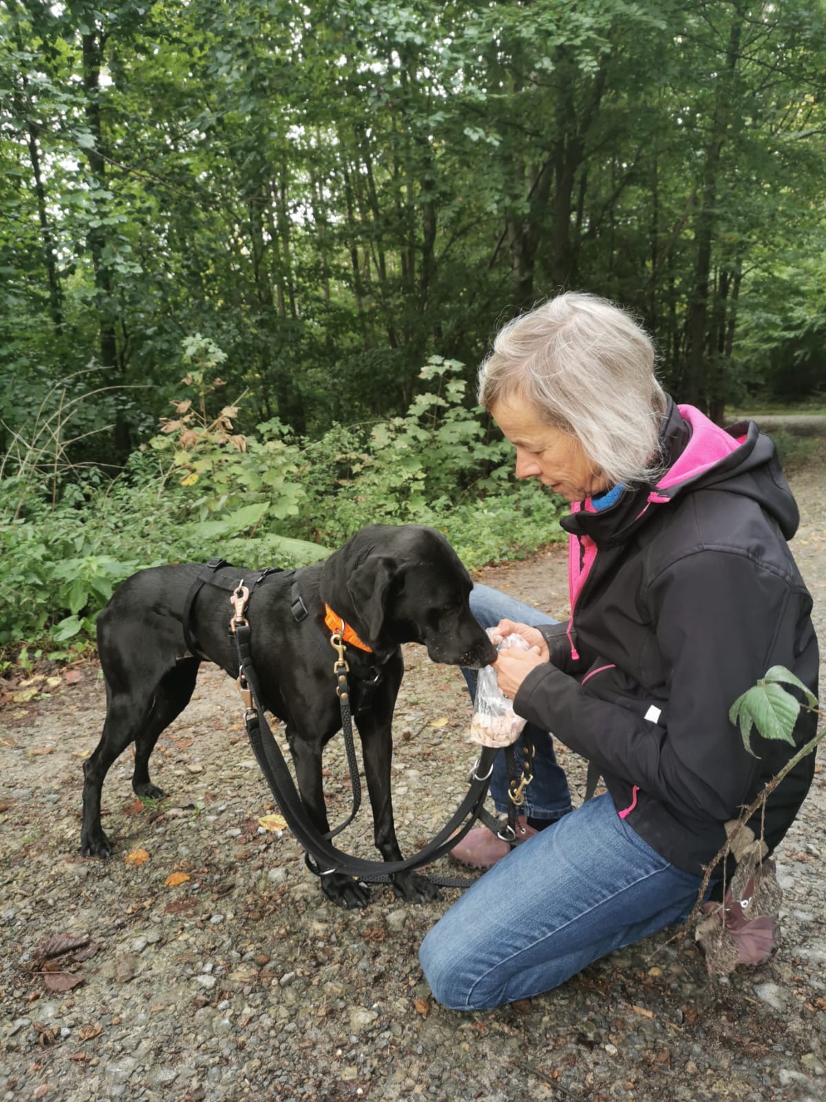 Aus der anfänglichen Skepsis wächst immer mehr Vertrauen, das sicherlich weiter ausgebaut werden darf. Auf den Spaziergängen beobachtet sie genau, geht aber Begegnungen nicht mehr aus dem Weg. Ist ihr etwas absolut unheimlich, sucht sie zunächst Schutz, bekommt dann recht schnell Vertrauen und löst die Situation selbst auf. Je nach Wetterlage reagiert sie auf Wildgerüche im Wald. Sie hat ihre Nase dann nur noch unten und will vorwärts. In diesen Situationen ist es noch sehr schwer, ihre Aufmerksamkeit zu bekommen. Fahrradfahrer auf Waldwegen machen ihr Angst.