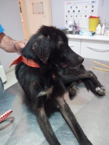 Als Black von unseren italienischen Tierschutzkollegen auf der Straße aufgelesen wurde, ging es ihm schon sehr schlecht. Irgend jemand hatte ihn einfach ausgesetzt und er hatte verzweifelt versucht, zu überleben. Aber nun war er den Strapazen des Lebens auf der Straße nicht länger gewachsen und wäre wohl gestorben, wenn die Tierschützer ihn nicht mitgenommen hätten. Black war bis auf die Knochen abgemagert, mit zahlreichen kahlen Stellen, blutend und übersäht mir Flöhen und Zecken. Ein Bluttest ergab leider auch einen hohen Leishmaniosetiter.