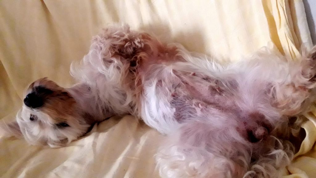 Am Rücken waren Blanca fast kahl, offensichtlich hate sie hautprobleme und brauchte dringend einen Päppelplatz. Unsere Kollegen konnten sie in einer spanischen Familie als Pflegehund unterbringen und ließen sie gründlich untersuchen. Sie bekommt nun Tabletten zur Verbesserung der Haut und wird zwei Mal pro Woche mit speziellem Shampoo behandelt. Und es wirkt! Die Entzündung klingt langsam ab und das Fell wächst wieder nach.