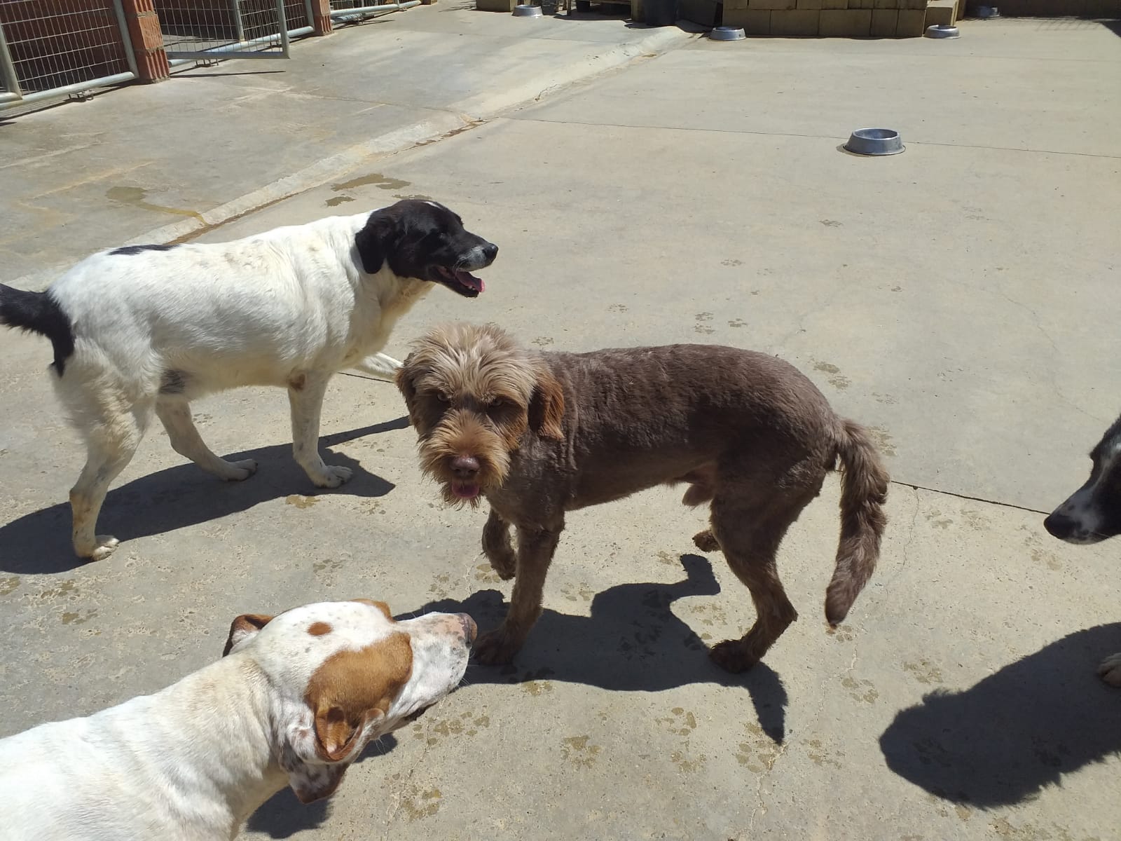 Bollito wuchs gemeinsam mit seinen drei Geschwistern in einem schlecht betreuten spanischen Tierheim auf. Keiner kümmerte sich dort richtig um die Hunde, die verwahrlost und menschenscheu wurden. Als das Tierheim durch die Polizei geschlossen wurde, kamen die vier Geschwister in die Obhut unseres Partnervereins.