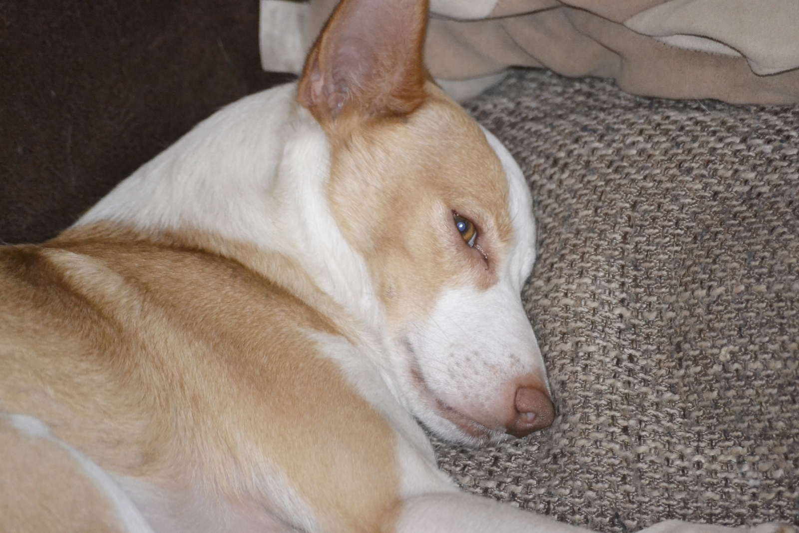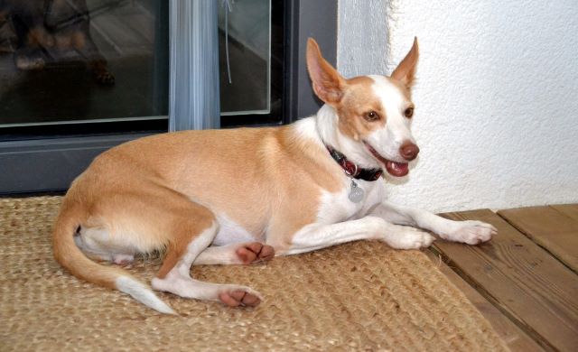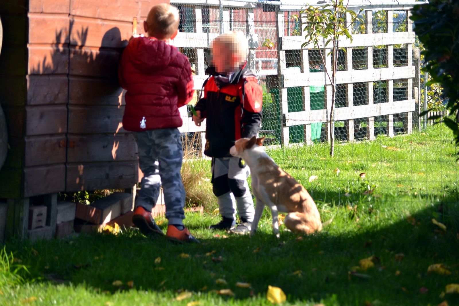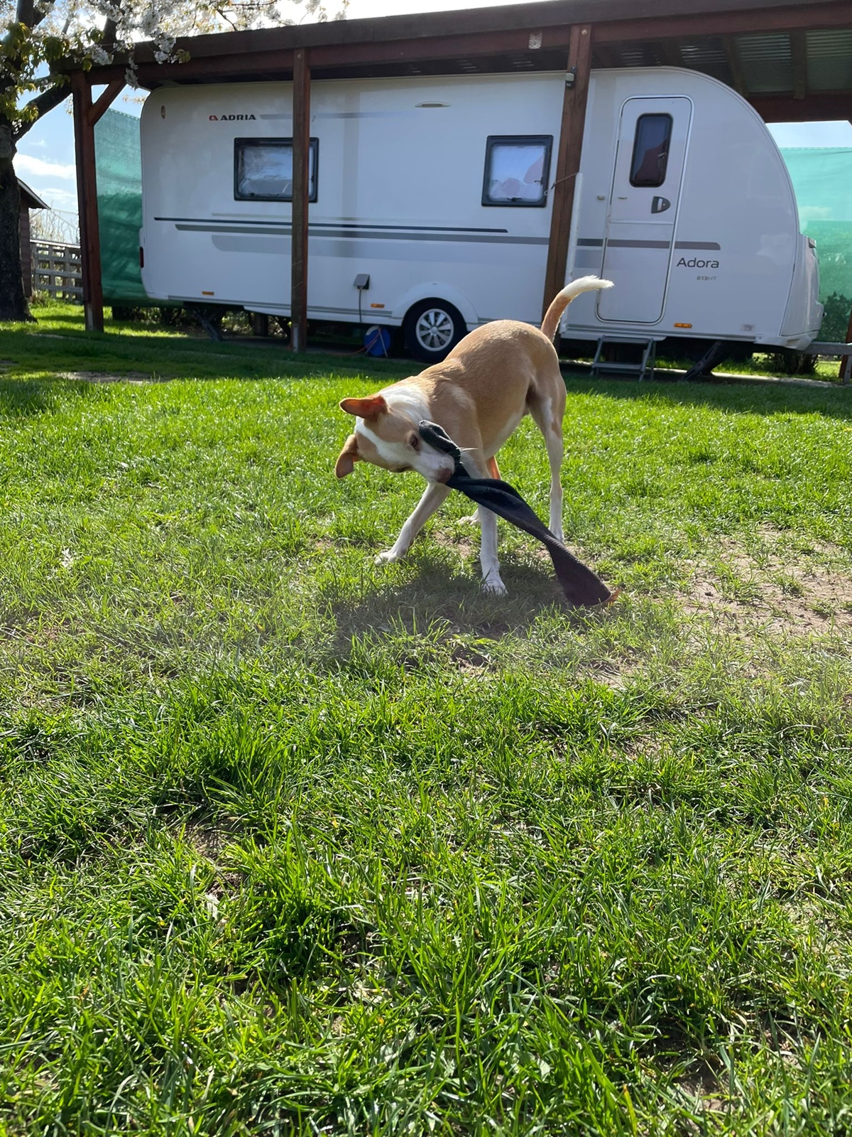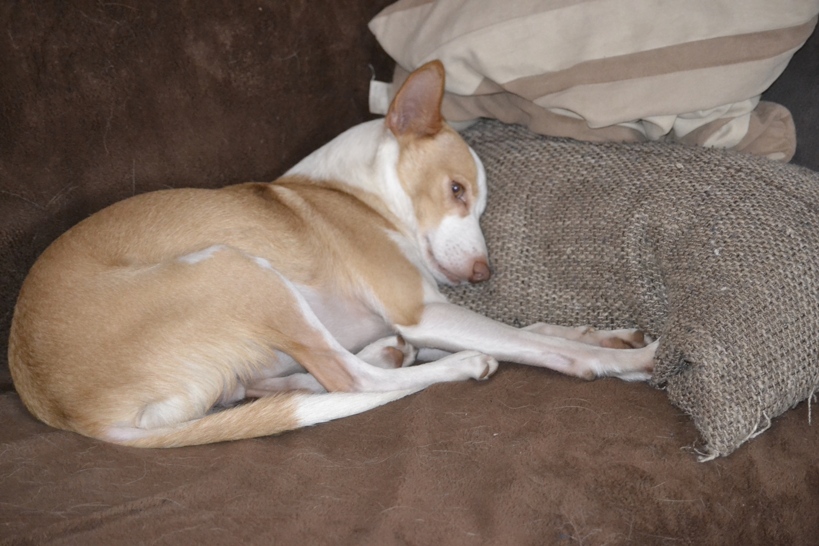 Typisch für einen Podenco zeigt sich nun ein wenig Jagdtrieb. Er rennt im Garten sofort zur Hecke, wenn dort ein paar Vögel sitzen. Aber nicht nur Vögel sind sein Beuteschema, auch im Garten umherfliegende Blätter bekommen seine Aufmerksamkeit. Eigentlich alles, was sich im Garten durch eine Windbö bewegt.