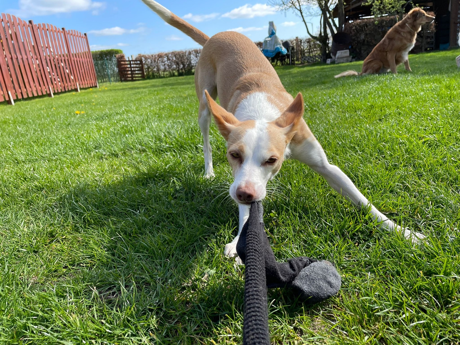 Wir wünschen uns für Boogie ein Zuhause mit einem Garten oder in der Nähe ein eingezäuntes Freilaufgebiet. Nur durch Bewegung alleine kann man einen Podenco auf keinen Fall auslasten und glücklich machen! Die körperliche Auslastung und vor allen Dingen die geistige Auslastung wie z. B. Nasenarbeit oder Apportierspiele, Beides muss stimmen.