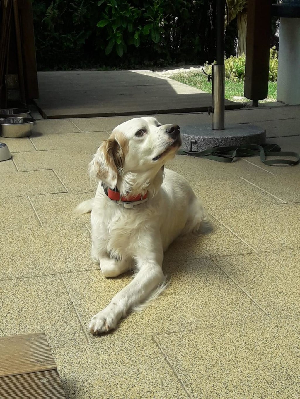 Bosco hat sich in seiner Pflegestelle gut eingelebt. Seine Pflegefamilie erlebt ihn als ruhigen, sanften und sehr verschmusten Hund. Er war von Anfang an stubenrein, macht nichts kaputt und schläft nachts durch. Bosco ist also ein richtiger Traumhund, der nun auch den Garten der Pflegefamilie für sich entdeckt. Bei den Spaziergängen merkt man noch seine Unsicherheit, aber auch hier wird er langsam sicherer. Der Hündin der Pflegefamilie begegnet Bosco freundlich.