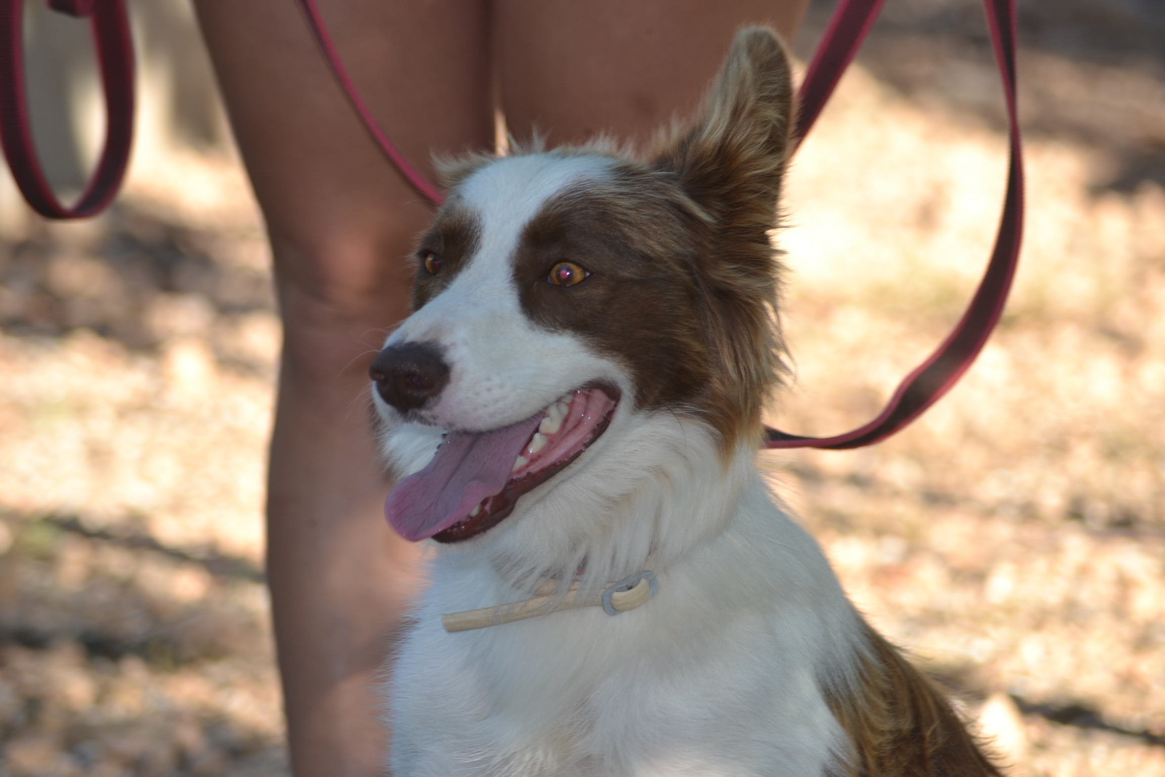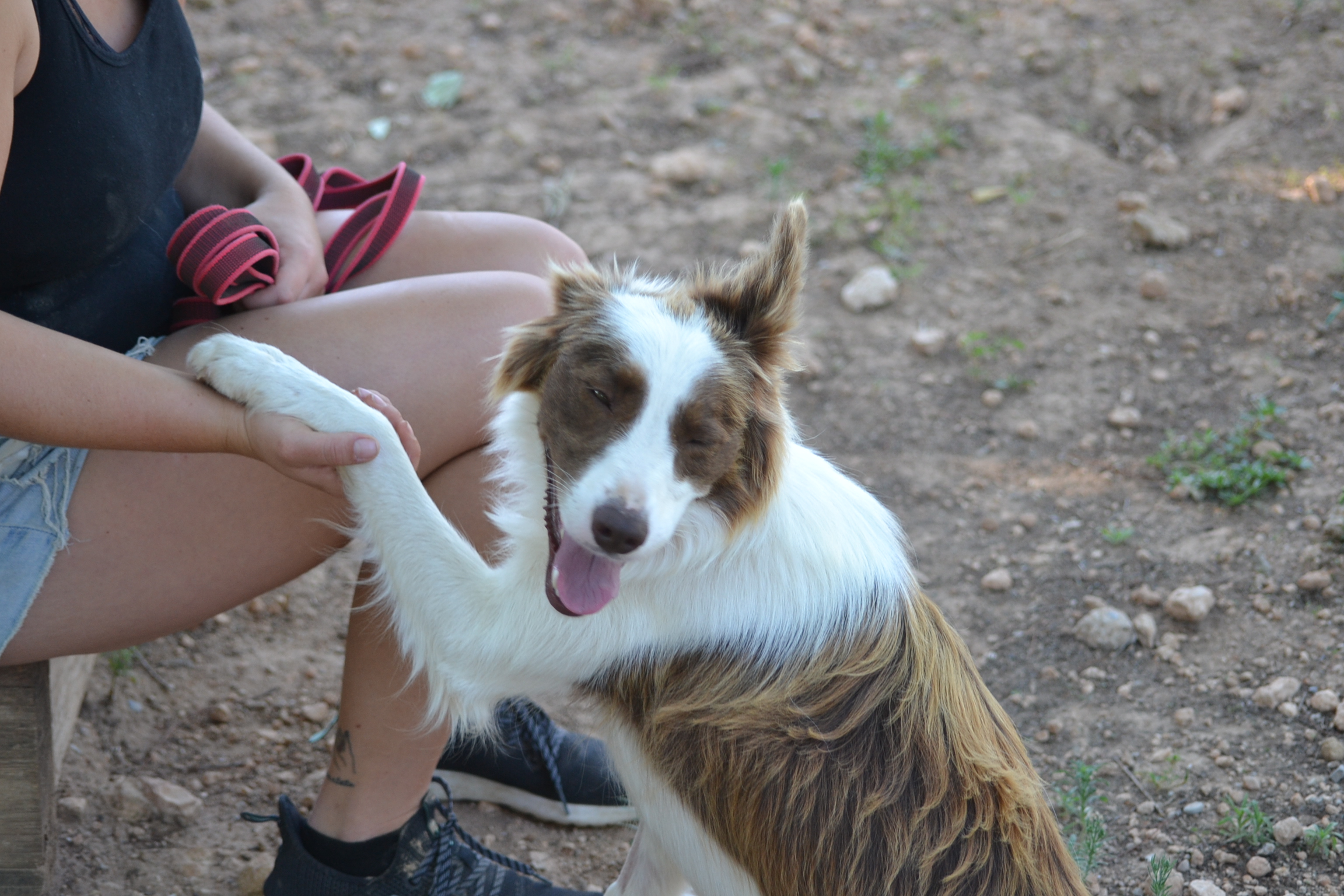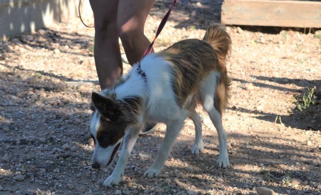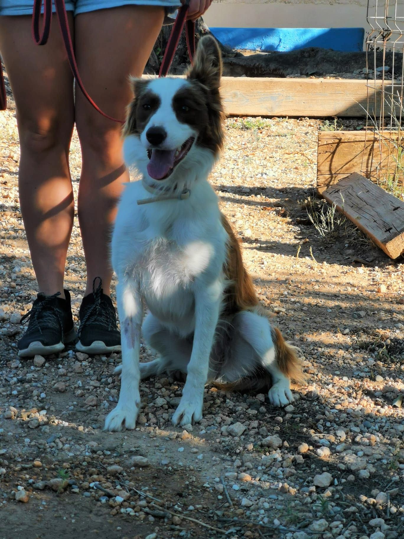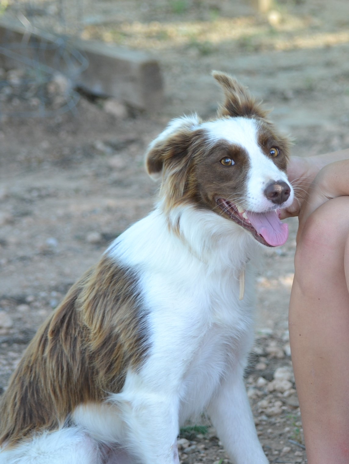 Dort benimmt sie sich wie ein typischer Border Collie, aktiv und schlau. Das Zusammenleben in der großen Hundegruppe meistert sie schon ganz gut. Ab und an muss sie etwas ausgebremst werden, aber grundsätzlich verträgt sie sich mit den anderen Hunden gut. Menschen mag sie gern und freut sich sehr über deren Aufmerksamkeit.