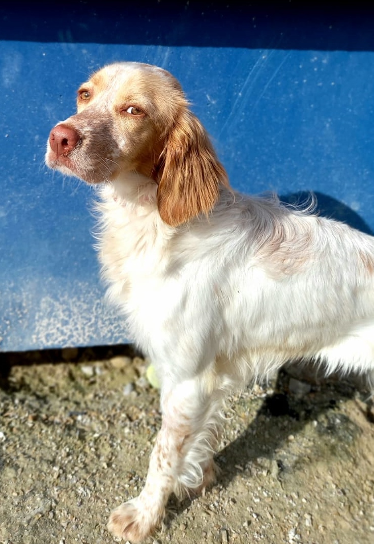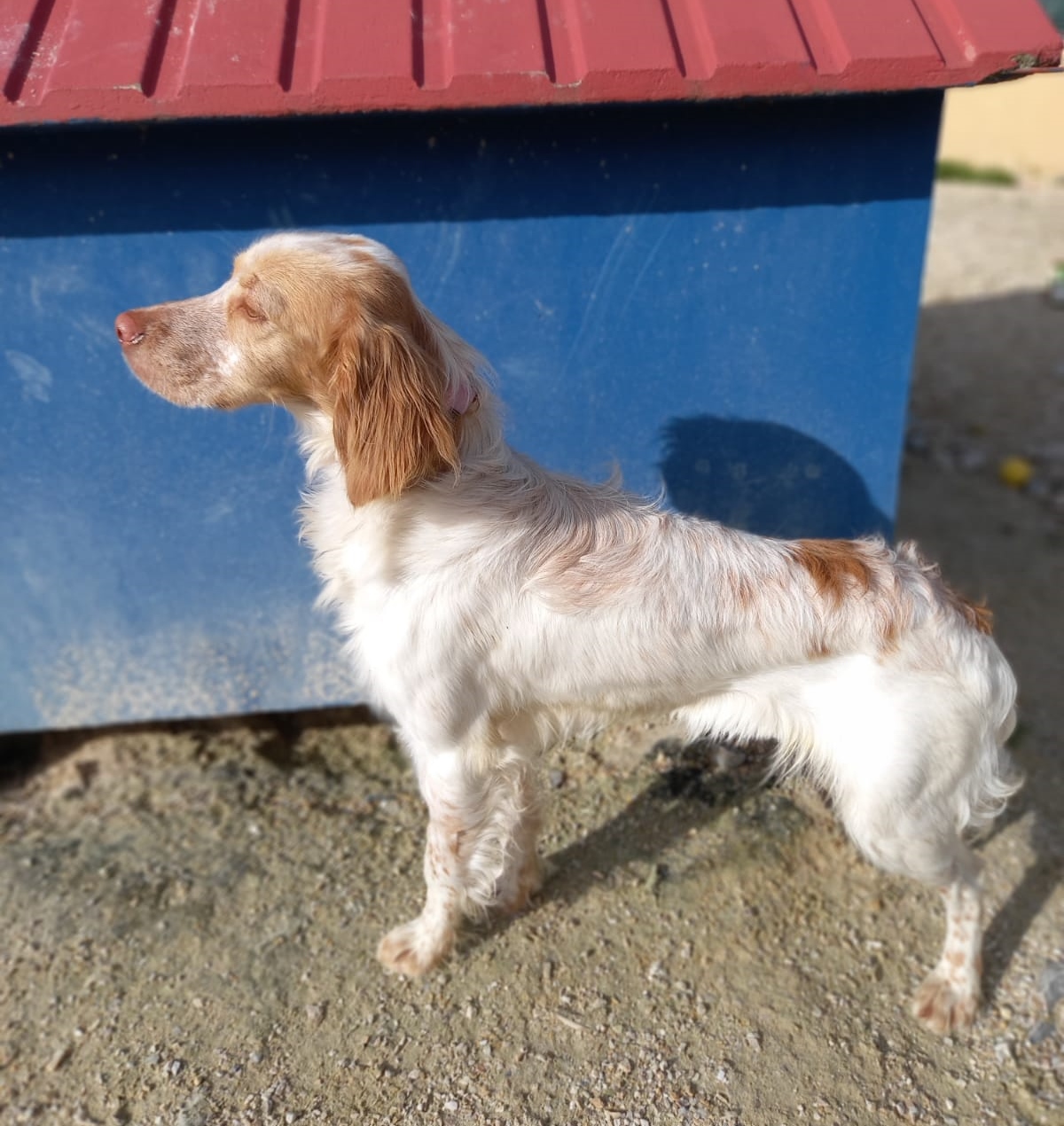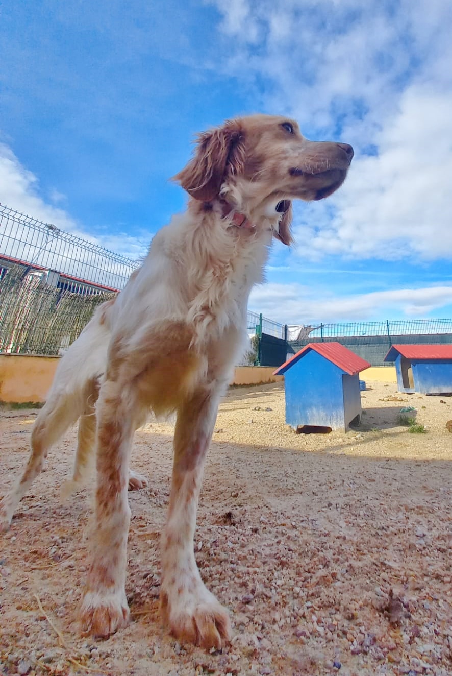 Diese zarte Setterine ist Cloe. Sie kommt aus einer bekannten Zucht – das half ihr aber auch nicht weiter! Warum der Züchter/Jäger sie ausrangiert hat, wissen wir nicht. Wir freuen uns aber, dass wir ihr jetzt ein Leben in einem schönen Zuhause in Deutschland ermöglichen können und sie solange sicher in der Auffangstation in Asturien warten kann.