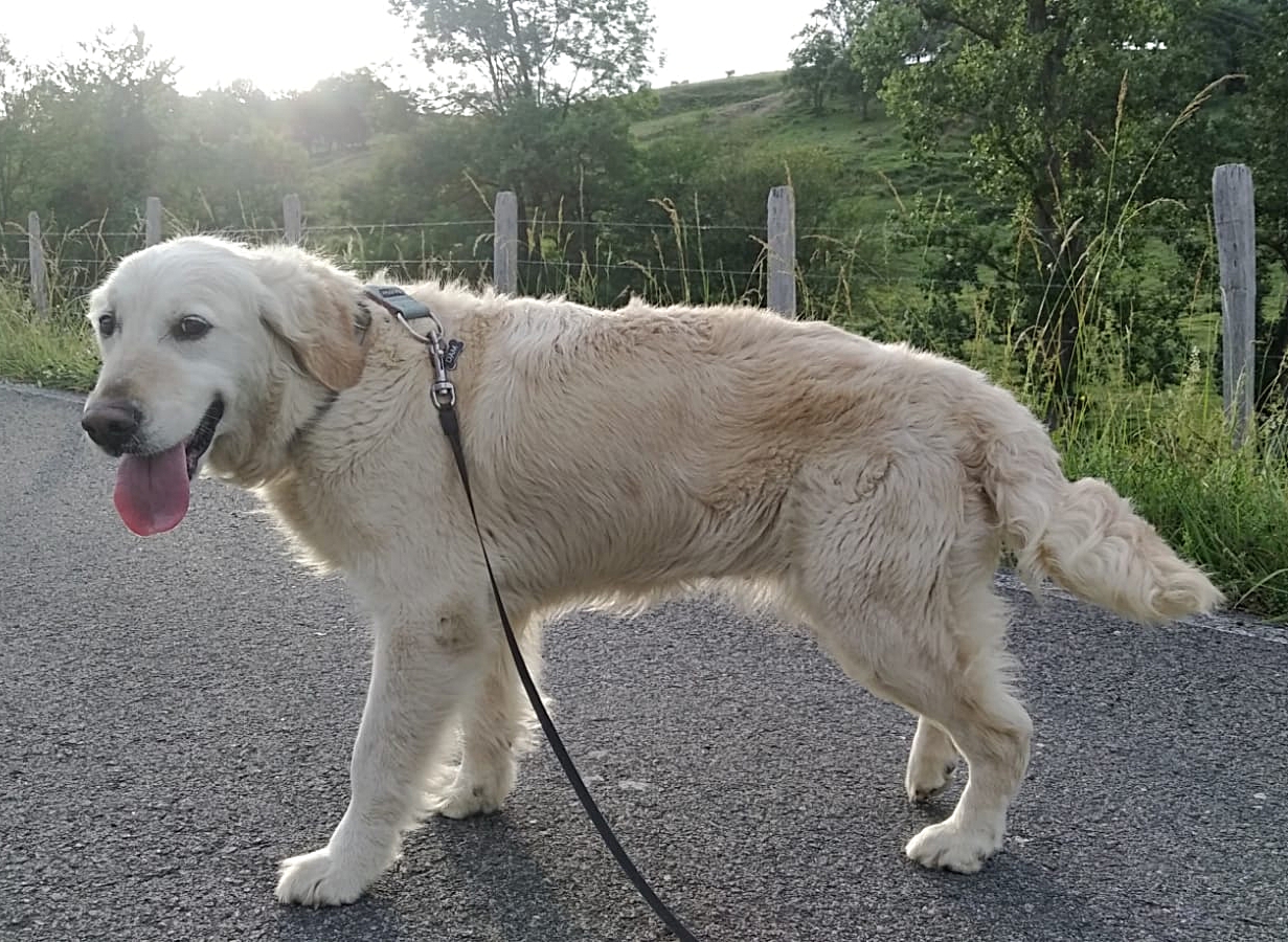 Golden Retrieverhündin Danna ist eine typische Vertreterin ihrer Rasse, immer gut gelaunt und freundlich zu allen und jedem. Ihre bisherigen Besitzer wollten sie trotzdem los werden, als Danna älter und krank geworden ist. Sie sind umgezogen und wollten die Hündin nicht mitnehmen. Zum Glück war das Tierheim voll und nahm Danna nicht auf. Also versuchte ihre Familie, sie übers Internet los zu werden.