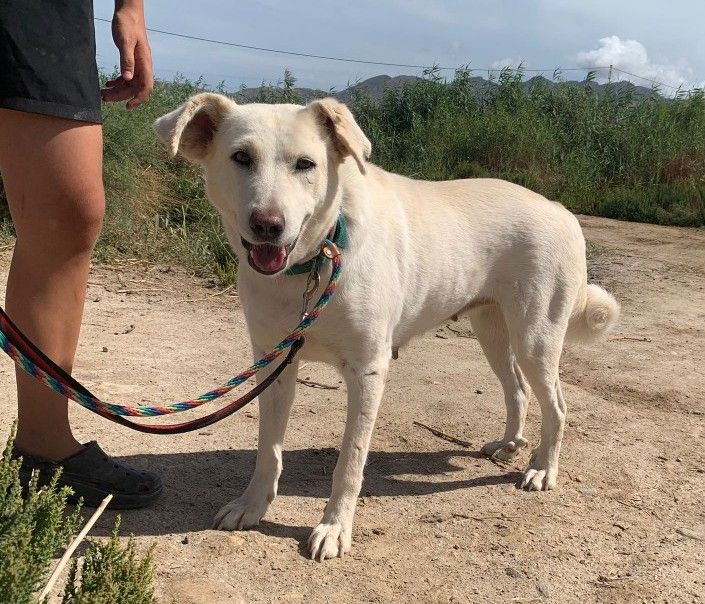 Sie ist wirklich eine nette und verschmuste Hündin. Ihr Welpe, mit dem sie gefunden wurde, ist bereits in ein neues Zuhause gezogen. Jetzt braucht noch die liebe Fern das passende Zuhause. An der Leine läuft sie schon richtig gut und sie ist auch eher eine ruhige und gemütliche Hündin. Im Zwinger verteidigt sie schon mal ihr Fressen; wir denken es kommt vom Leben auf der Straße. Wer da sein Fressen nicht verteidigt überlebt auch nicht.