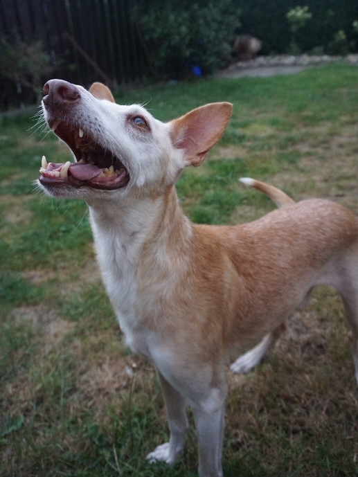 Fuchur ist einer von der schüchternen Sorte Hund. Er benötigt etwas mehr Geduld und Einfühlungsvermögen um Vertrauen fassen zu können. Es wirkt nicht so, als ob er das Leben im Haus bereits kennen gelernt hat. Am 1. Tag musste ich ihn ins Haus tragen, der Wandspiegel hat ihn verwirrt und er wusste nicht so recht wohin mit sich. Nach fast einer Woche scheint er zur Ruhe zu kommen und kann schon mal entspannen. In den ersten Tagen wirkte er noch etwas unglücklich. Streicheleinheiten ertrug er vielmehr als das er sie genießen konnte. Zu groß schien da noch die Anspannung. Wahrscheinlich war einfach alles neu und unbekannt. Anderen Hunden gegenüber zeigt Fuchur sich freundlich, gibt aber schon mal zu verstehen wenn es ihm zu viel wird. Mit der vorhandenen Hündin und Besucher Vierbeinern versteht er sich prima und auch Kinder sind kein Problem. Fast schon besser als Erwachsene. Männern gegenüber ist er ein Tick scheuer. Die Katze ist ihm eher unheimlich und wird schon mal angebellt. An der Leine läuft er schon super und lässt sich auch ganz geduldig das Geschirr anlegen. Insgesamt ist Fuchur sehr unterwürfig und braucht eine sanfte Führung. Ein souveräner Hundekumpel täte ihm sicher gut. Er taut Tag für Tag ein Stückchen mehr auf und scheint so langsam Vertrauen zu fassen.