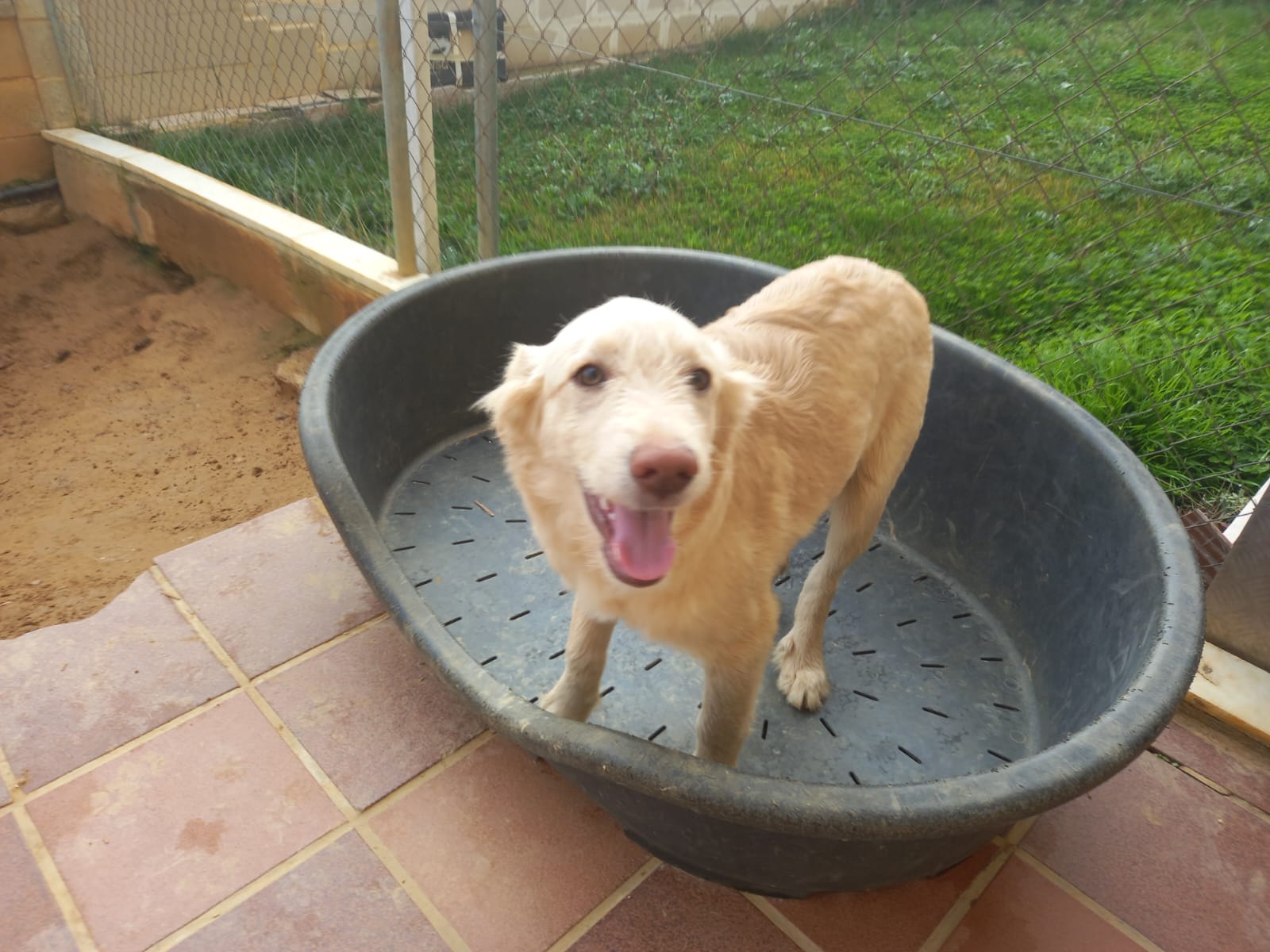 Gomez stammt aus einer öffentlichen Perrera. Wie oder warum er dort landetet, ist nicht bekannt. Vielleicht war er einfach ein ungewollter Welpe oder seine vorherigen Besitzer hatten keine Lust mehr auf ihn. Unsere spanischen Kollegen holten ihn mit 3 Monaten aus der Perrera und konnten ihn bei einer Pflegefamilie unterbringen. Hier wächst er nun zusammen mit anderen Welpen auf.
