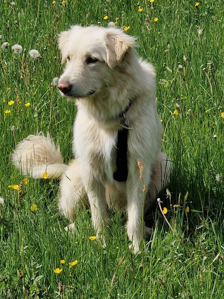 Mit seinem Pflegefrauchen hat er gerade einige Tage beim Botanisieren im Gelände verbracht. Aufgrund des nur minimalistisch ausgeprägten Jagdtriebes, seiner Geduld und seiner Anhänglichkeit ist er ein perfekter Kartierhund. Brav wartet er auch mal im Auto wenn er nicht mit darf (natürlich nur bei bei entsprechenden Temperaturen).