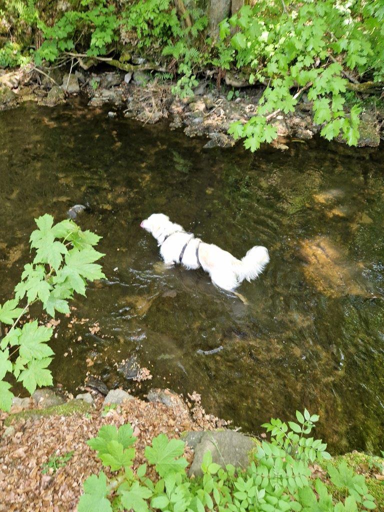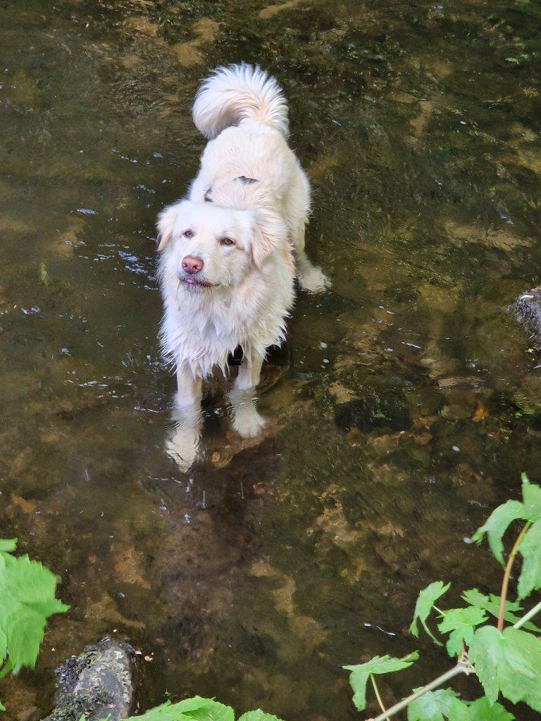 Gomez liebt Wasser und so nutzt er gerne sich bietende Gelegenheiten für eine kleine Erfrischung.