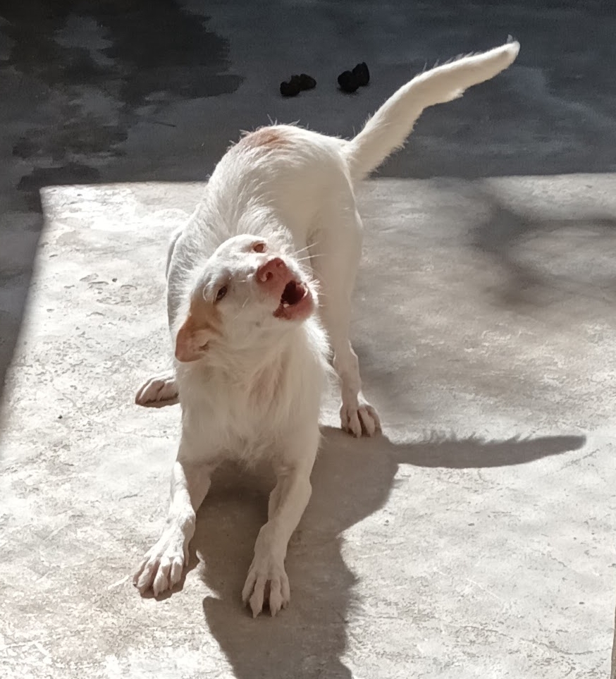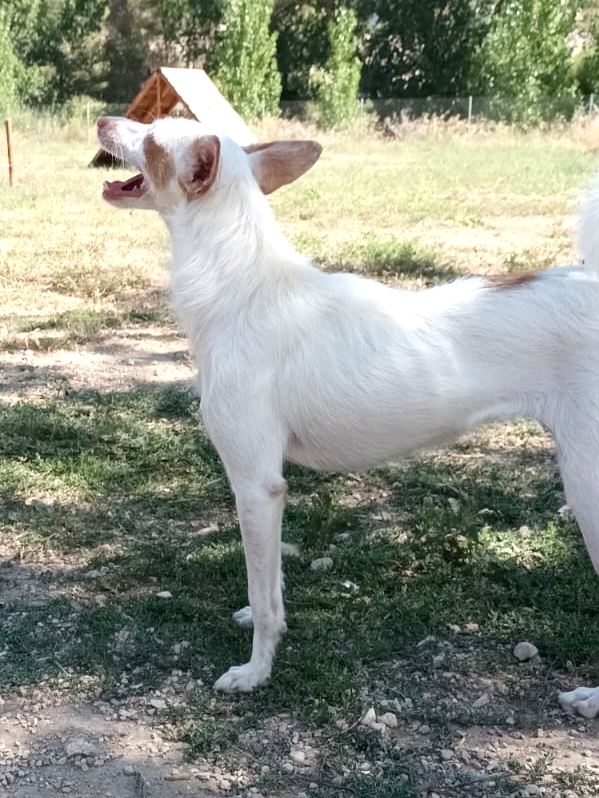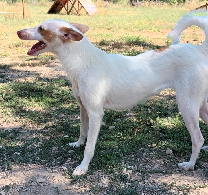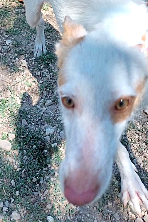 Golosina kann man mit zwei Worten perfekt beschreiben: charmant und verrückt. Ihre traurige Geschichte teilt sie leider mit vielen anderen Artgenossen in Spanien. Die zarte Podenco-Mix-Hündin wurde in einem Park von Tierschützern gefunden, angelockt und gesichert und anschließend ins Tierheim gebracht.