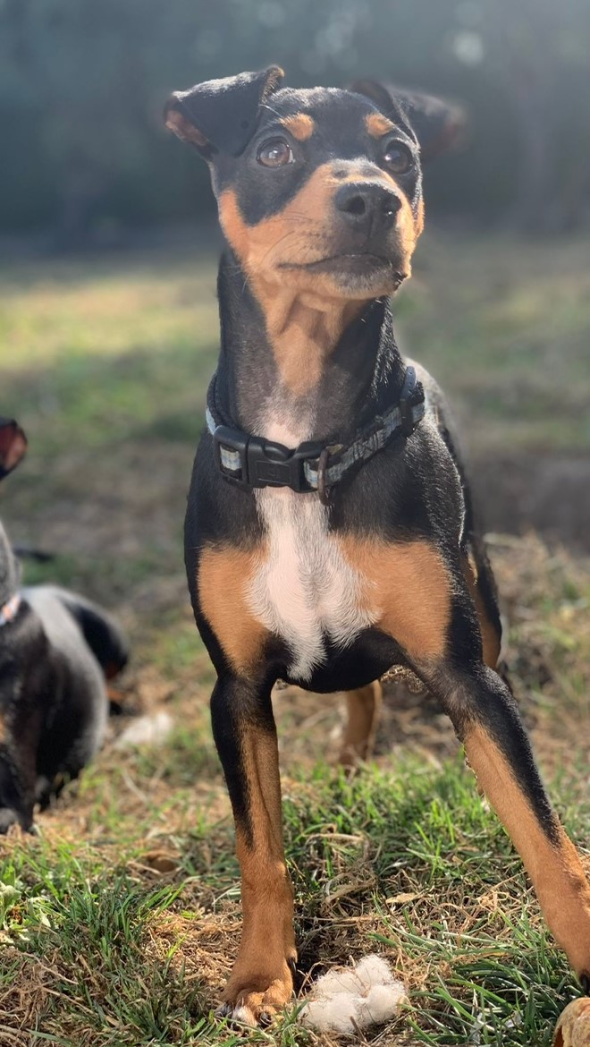 Als Pinscher ist Gucci ein intelligenter und wachsamer Hund. Er passt sehr gerne auf Haus und Hof auf und meldet Besucher sofort. Er ist ein sehr aktiver und lebhafter Hund.
