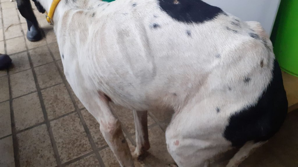 Momentan ist Gulliver extrem untergewichtig. Bei etwa 50cm Schulterhöhe wiegt er noch nicht einmal 11kg. Bevor er geimpft oder gar kastriert werden kann, muß er erst einmal ein wenig Gewicht zulegen.