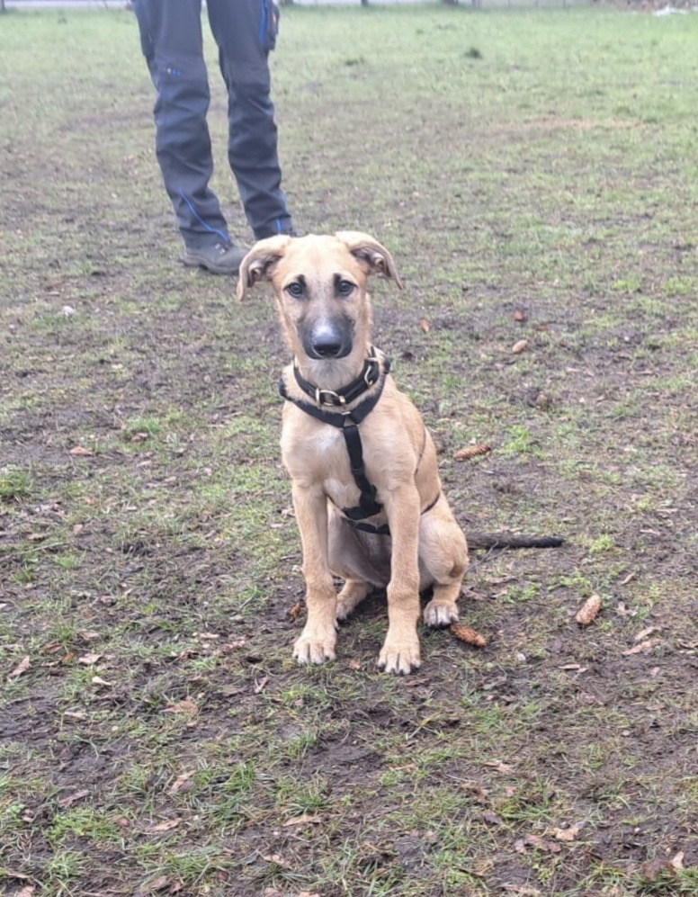 Hanni ist ein aufgeweckter und neugieriger Welpe. In unbekannten Situationen ist sie anfangs etwas zurückhaltend.