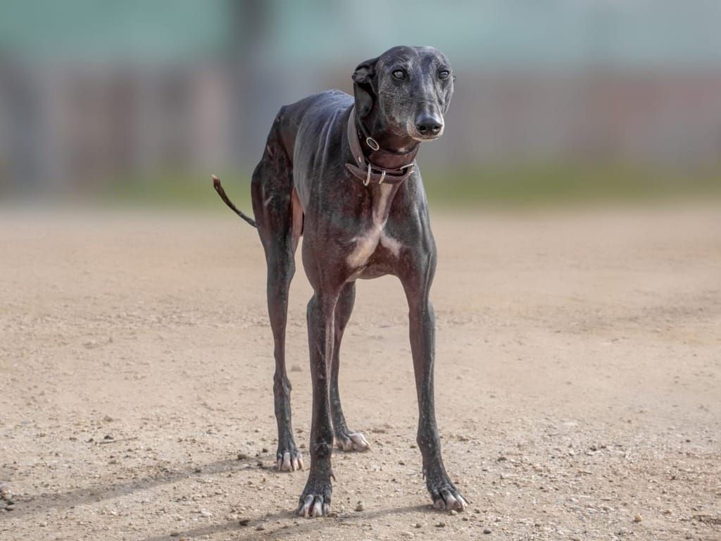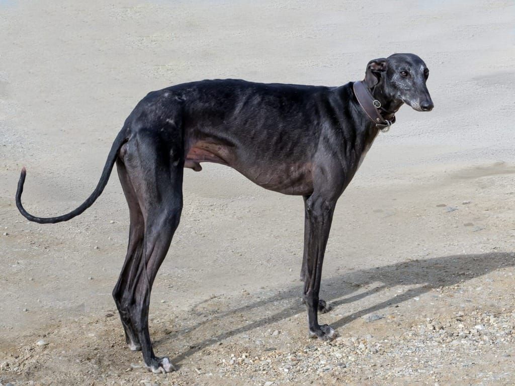 Hudson – ein wunderschöner schwarz-grauer Galgo-Rüde. Er wurde stark untergewichtig an einer Straße gefunden. Dank guter Pflege unserer spanischen Partner ist Hudson wieder zu Kräften gekommen und es geht ihm, trotz seiner Leishmaniose, sehr gut.