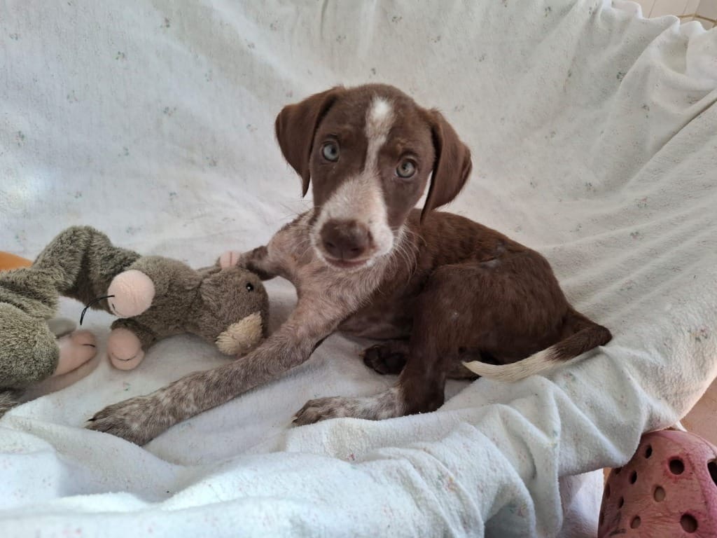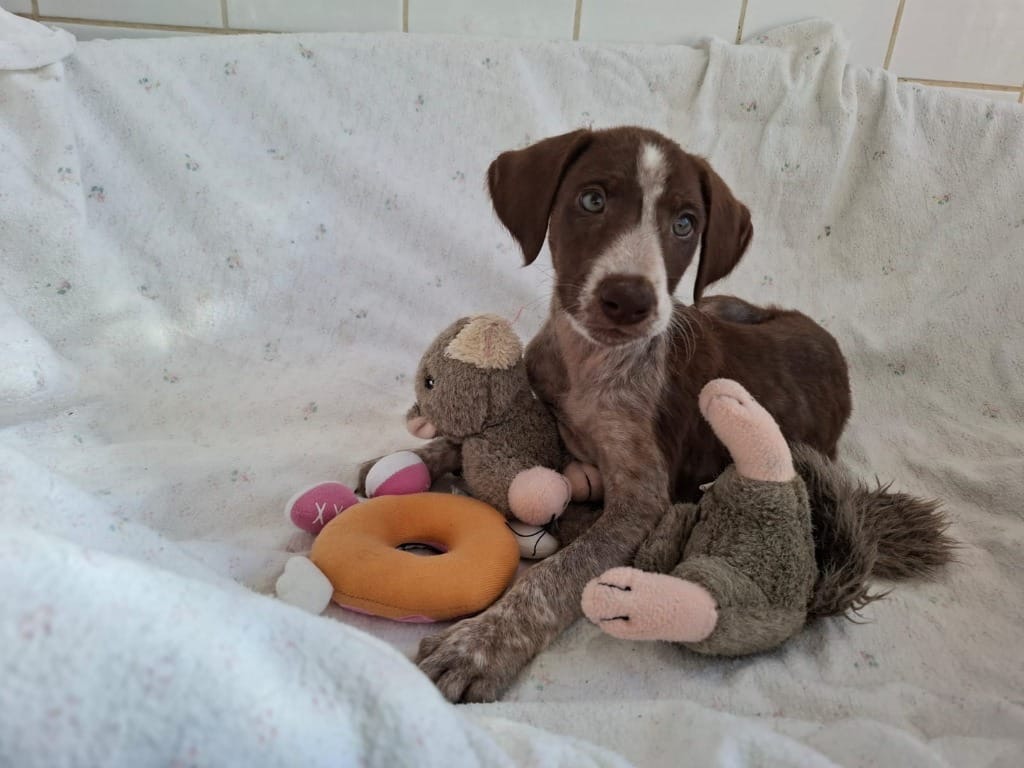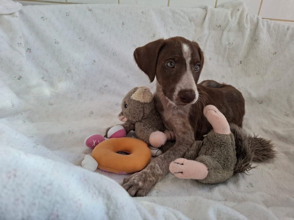 Wir suchen für Jenna Menschen, die erstmal eine junge wilde in die richtigen Bahnen lenken. Das ein oder andere Malheur wird da sicherlich passieren. In Jenna steckt auf jedenfall ein Jagdhund, wahrscheinlich sogar ein Pointer, deshalb sollten ihre Menschen schon sportlich unterwegs sein.