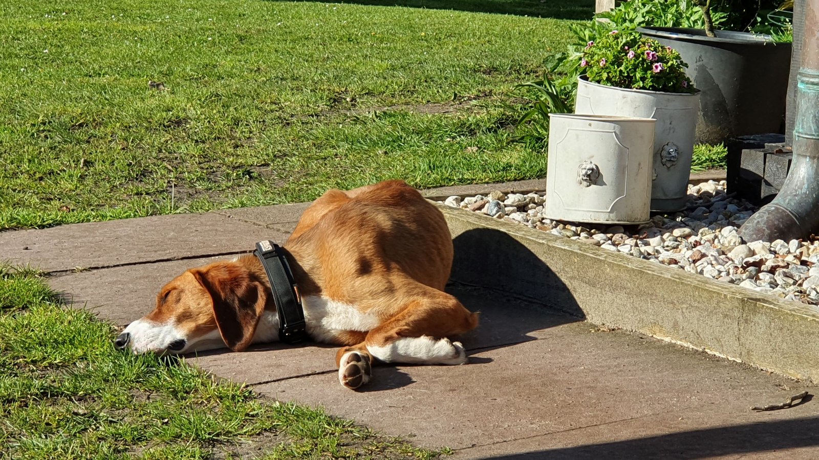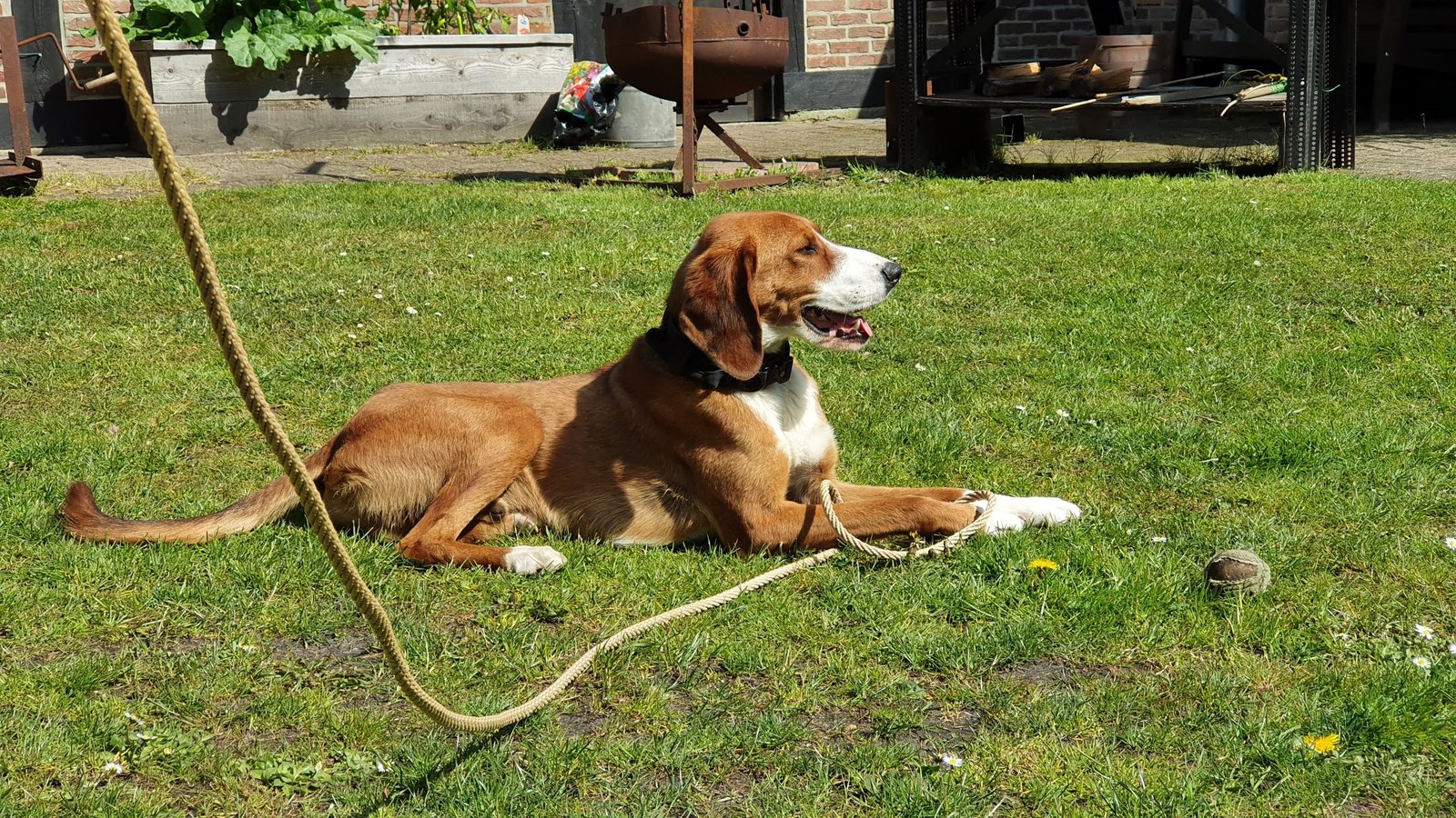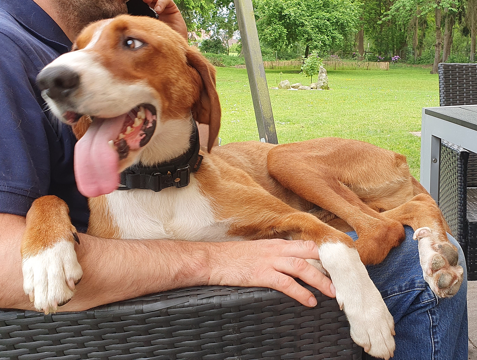 Das hat er aber nach ein paar Tagen abgelegt und jetzt schreckt er nicht mal mehr auf. Jeremias suchte von Angang an die Nähe zu uns und liebt ausdauernde Streicheleinheiten. Auch bei Besuch und Kindern ist er sehr ausgeglichen, nicht zu aufdringlich, lässt sich streicheln und legt sich dann aber auch wieder hin. An der Leine laufen kennt er allerdings überhaupt nicht, da haben wir noch reichlich Arbeit vor uns.