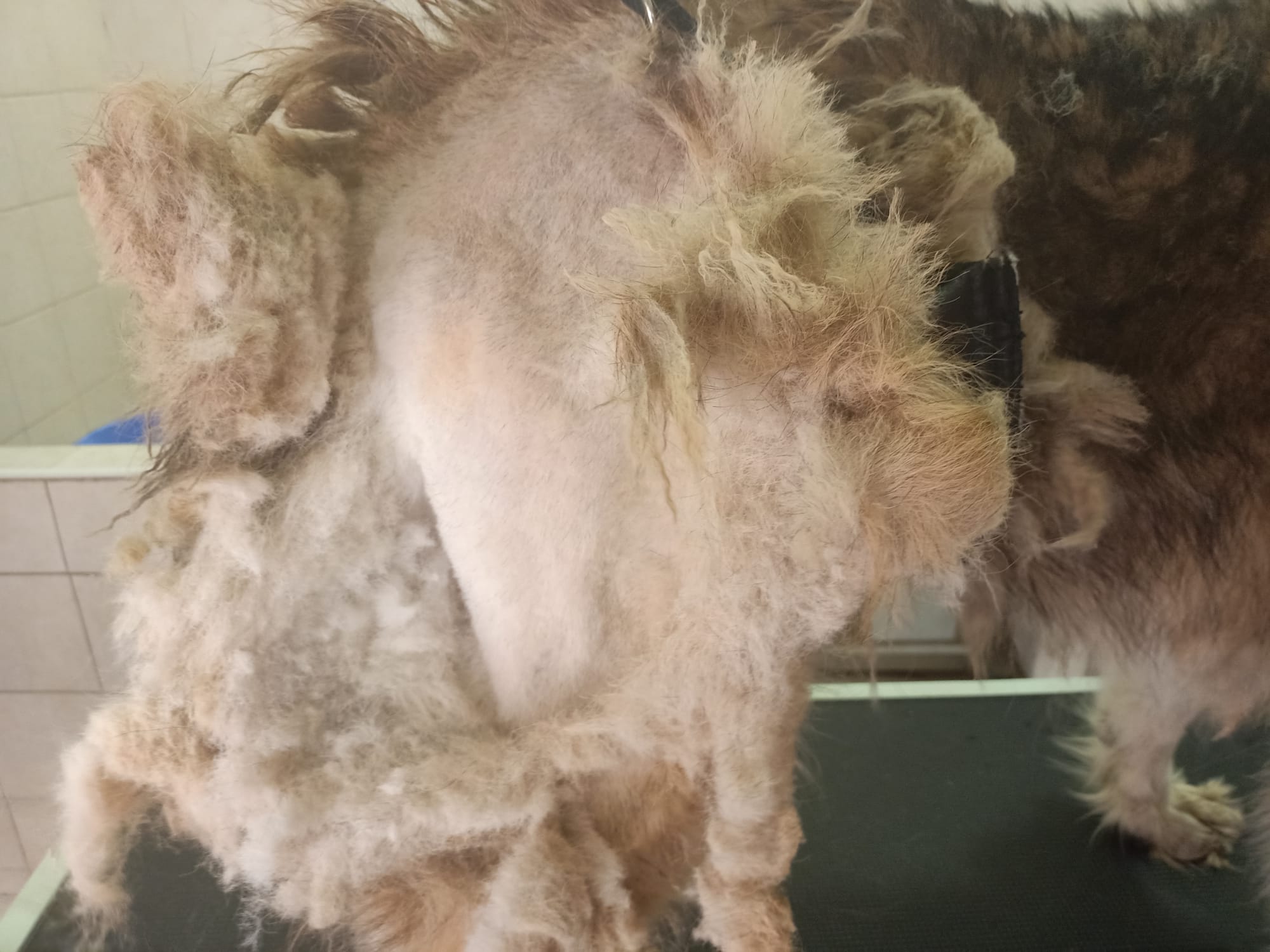 Und wir hatten Glück, schnell konnten wir eine Pflegestelle in Deutschland finden. Bevor Lamu die Reise nach Deutschland antrat, war ein Besuch beim Hundefrisör fällig, denn das üppige Fell war leider ziemlich verwahrlost. Wer weiß, wie lange sich schon niemand um sie gekümmert hatte? Einmal mehr zeigte Lamu ihre Sanftmut und Gutmütigkeit, sie ließ sich problemlos und sehr geduldig von ihrem dicken Pelz befreien.