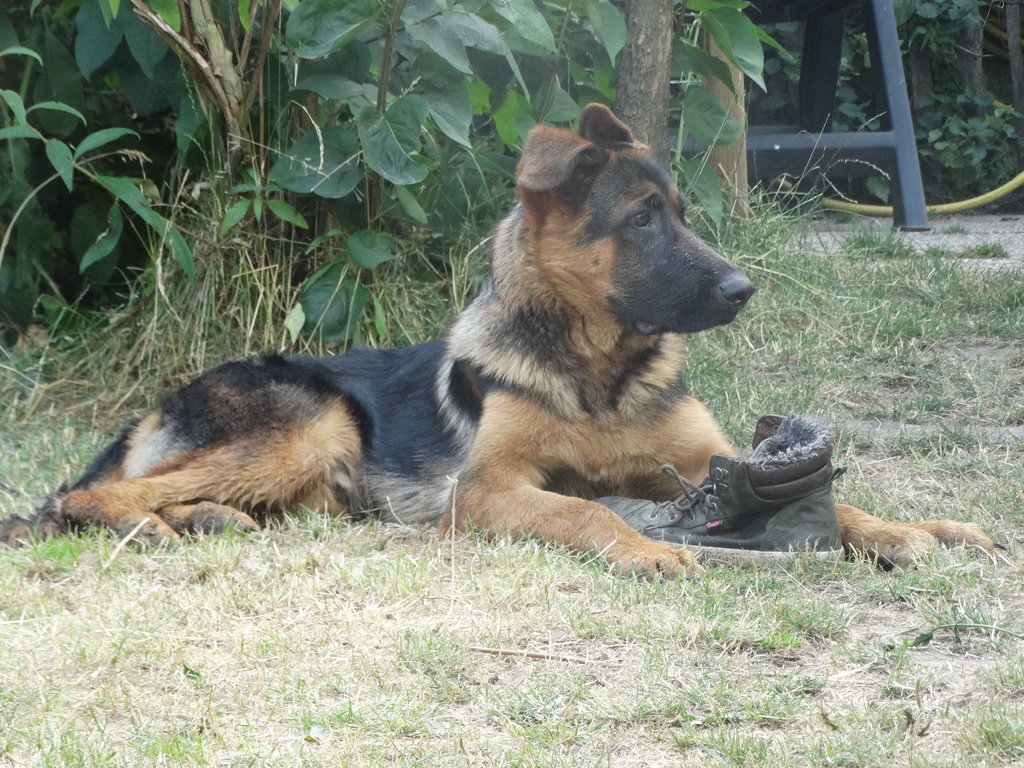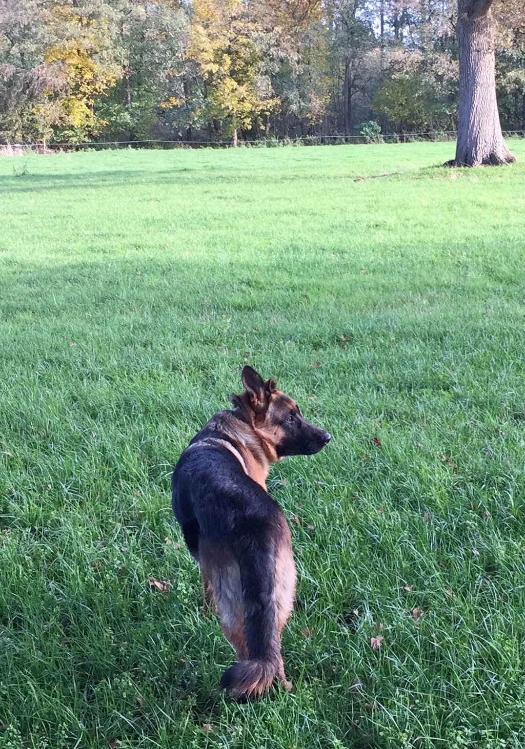 Vom Kopf her ist Leon sehr gelehrig und immer bemüht, alles richtig zu machen. In gewohnter Umgebung nimmt er auch schon kleine Revierkontrollgänge vor. Seine selbstgewählten Ruhephasen sind dabei wichtig und sollten ihm ermöglicht werden. Neuerdings schafft es Leon auch auf den „Hundesessel“ zu klettern auf den er gern das Geschehen um sich herum beobachtet.