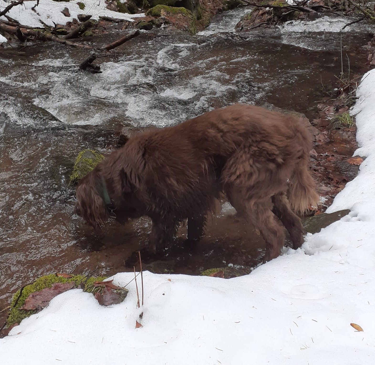 Trotz ihres hohen Alters macht Lotta lange Wanderungen gerne mit. Bäche und Teiche haben eine