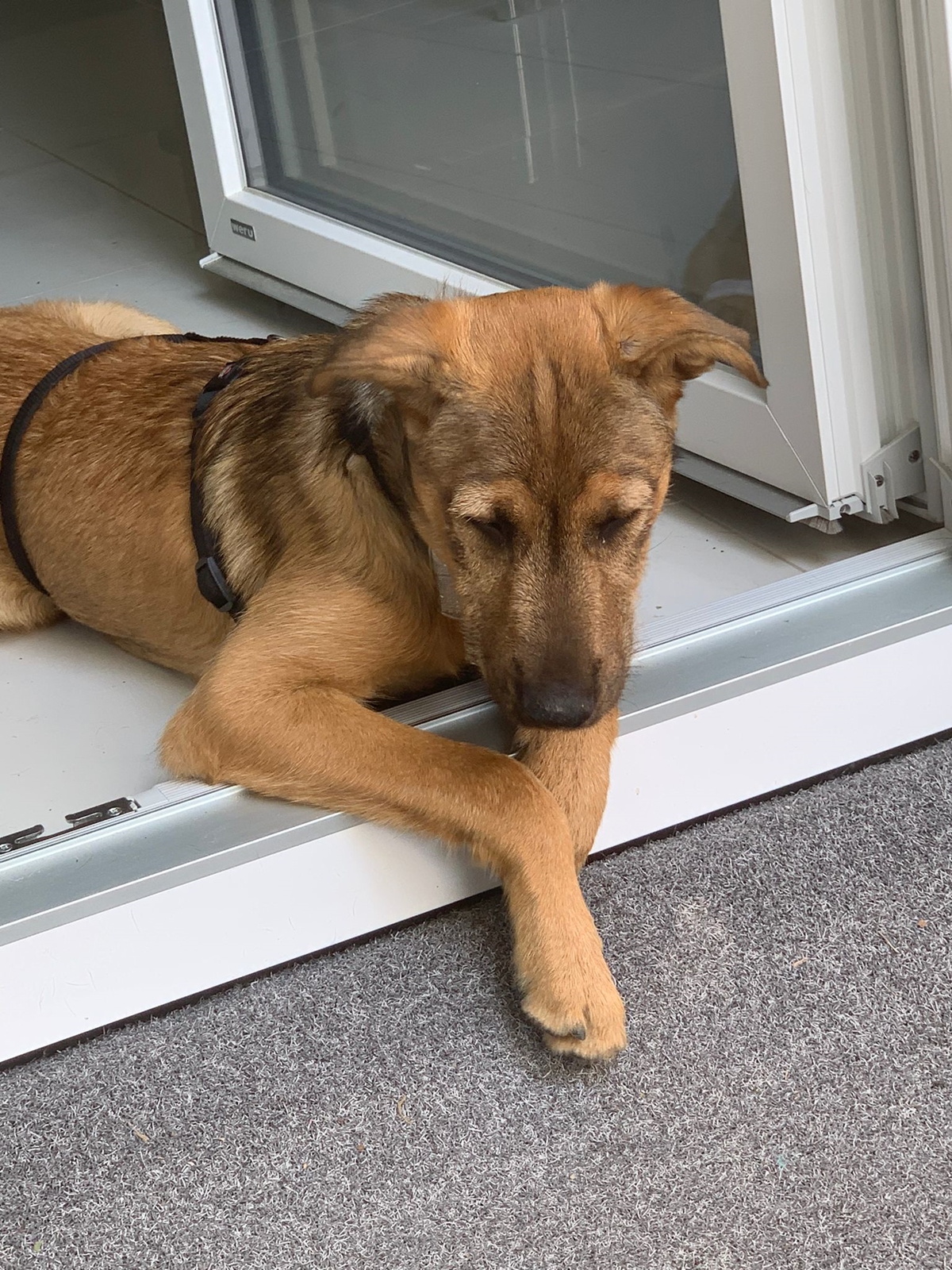 Der Trick besteht darin, sie hinten nicht runterlassen dann klappt es. Außerdem hat sie eine Leine dran, wenn ich den Verdacht habe das sie bald Pippi machen muss ). Sie taut immer mehr auf und wird sicherer. Aber den Weg bestimmen mit zuverlässiger Konsequenz, eigentlich will sie gar nicht wirklich vor die Türe und es zieht sie magisch ins sichere Reich zurück. Das nutze ich aus indem sie umdrehen darf wenn die Geschäfte draußen erledigt wurden. Das ist doch eine Win Win situation für beide Seiten. Sie ist ein schlaues Köpfchen unsere "Lotte von Andaluz".