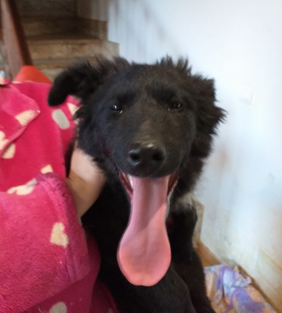 Momentan lernt er all die Dinge kennen, die für einen Familienhund alltäglich sind, für ihn aber teilweise noch eine Herausforderung. Die Geräusche der Haushaltsgeräte sind ihm noch suspekt, an der Stubenreinheit wird gearbeitet und allein bleiben kann er noch nicht. Er erzieht alle zur Ordnung - was nicht aufgeräumt ist, holt er sich.