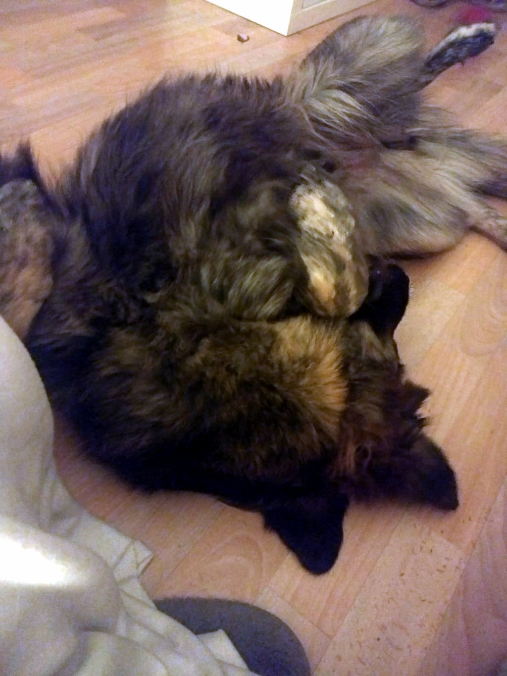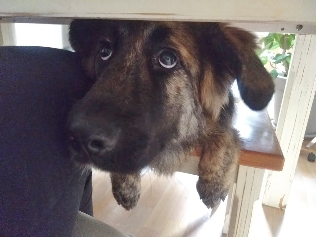 In der Wohnung kann sie sich zwischen den Gängen jetzt auch mal entspannen. Am liebsten krabbelt sie auf die Bank unter dem Tisch und versucht dort eine Runde zu schlafen.Das die Küche tabu ist, hat sich jetzt schon sehr gut verstanden und geht nur noch mit bis zu zwei Pfoten rein