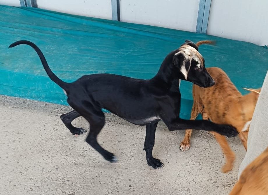 Der niedliche Mahal ist vermutlich ein Galgo-Mix-Bub. Seine Mutter wurde über eine sehr, sehr lange Zeit durch eine Wildkamera aufgezeichnet und konnte dann irgendwann eingefangen werden. Sie war zu dieser Zeit trächtig und der Vater ist unbekannt.