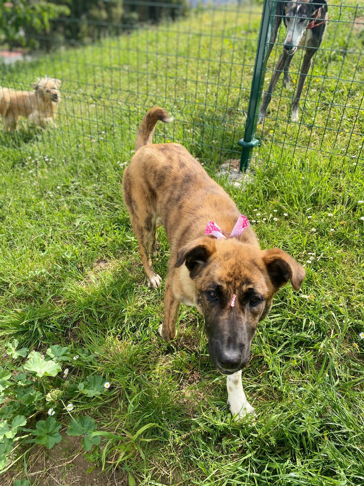 Mara ist eine sehr soziale und verspielte Hündin, die gerne mit ihren Hundekumpels durch den Auslauf des Tierheims tollt. Sie könnte also auch gut ihr künftiges Leben als Zweithund verbringen. Menschen gegenüber ist sie ebenfalls eine sehr offene und freundliche Hündin.