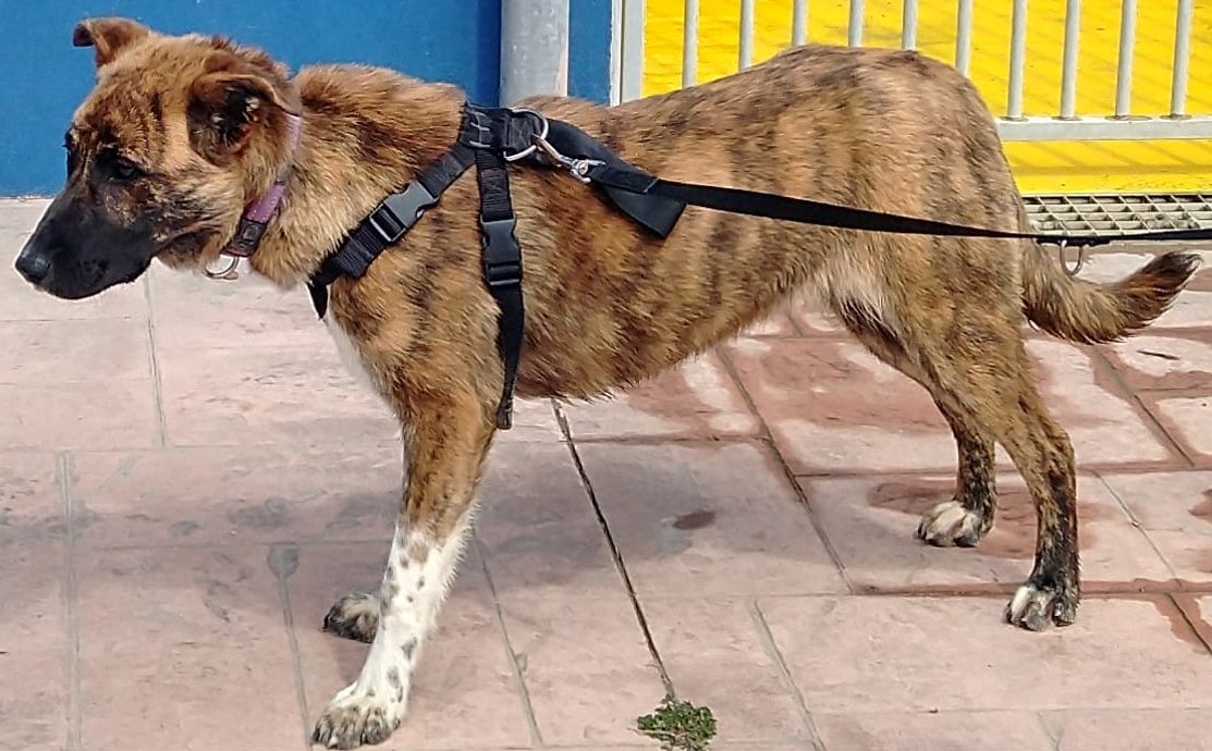 Mara, eine Hündin mit außergewöhnlicher Fellzeichnung, wurde vor wenigen Wochen in den Bergen Spaniens gefunden. Die Hündin schien schon eine Weile draußen gelebt zu haben und hielt sich meist in der Nähe von Straßen auf. Dort finden die Hunde mehr Essensreste und das Überleben fällt leichter. Nichts desto trotz sah Mara sehr mitgenommen aus, als sie gefunden wurde und wir waren froh, dass sie unbeschadet ins Tierheim gekommen ist und dort nun gepäppelt werden konnte. Es hat nicht lange gedauert und Mara ist wieder zu Kräften gekommen und kann sich nun auf das Abenteuer Leben einlassen. Jetzt fehlt nur noch die richtige Familie für die Maus.