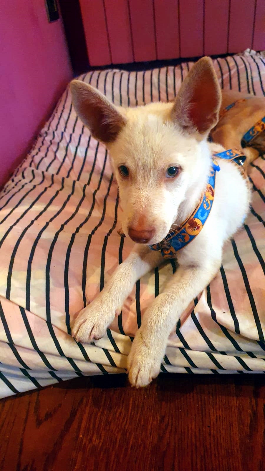 Wir suchen nun das passende Zuhause - gerne mit einem eigenen Garten - bei geduldigen Menschen die Freude daran haben, einen Welpen aufwachsen zu sehen. Aber die zukünftigen Hundebesitzer sollten auch diesem unglaublichen Hundeblick widerstehen können und trotz diverser Missgeschicke wie angenagte Schuhe, ausgebuddelte Pflanzen oder noch nicht perfekter Stubenreinheit liebevoll und kontinuierlich an der Erziehung der kleinen Plagegeister arbeiten. Falls Kinder im Haushalt leben, sollten sie schon etwas älter sein und verstehen, dass auch der aktivste Welpe seine Ruhephasen und Rückzugsräume benötigt.