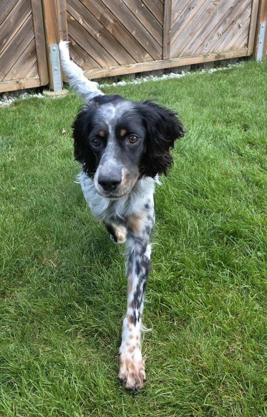 Mister muss noch Einiges lernen. Er kennt das Leben im Haus noch nicht und weiß auch nicht, dass es dort Sofas gibt, auf denen er mit seinen Menschen gut kuscheln kann. Setter sind Laufhunde und sehr gerne bei Wind und Wetter draußen in Wald und Feld