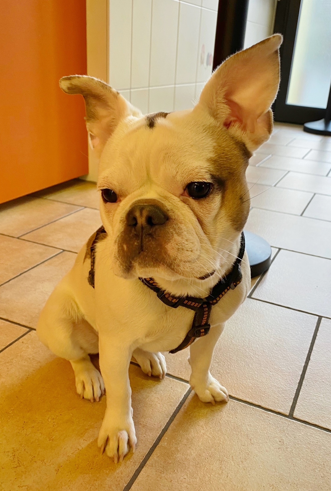 Französische Bulldoggen sind ganz menschenbezogene Hunde, aber auch temperamentvolle kleine Energiebündel, die entsprechend ausgelastet werden müssen. Naja hat eine längere Nase, deshalb bekommt sie gut Luft und schnarcht nicht. Die kleine Maus muss noch das komplette Hunde 1x1 erlernen, mit Leckerchen, viel Lob und Spaß wird Naja das mit Begeisterung gerne erlernen. Ein Besuch in der Hundeschule wäre sicherlich gut. Kinder sollten gern schon im Grundschulalter sein.