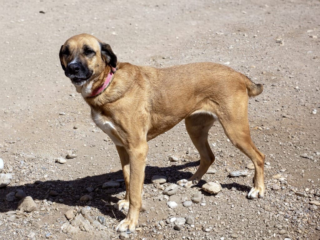 Nala – braucht ihren Simba! Die hübsche Mischlingshündin Nala wurde zusammen mit dem Rüden Simba von unseren Kolleginnen in Almeria von einem anderen Shelter übernommen, da dieses schließen musste. Von hier aus dürfen sich nun beide Hunde zusammen auf ihre Reise in ein liebevolles Zuhause machen! Nala ist eine stattliche Hündin, die es liebt, verwöhnt zu werden und zu kuscheln. Sie geht schon prima an der Leine und ist insgesamt eine recht unkomplizierte Hundedame.
