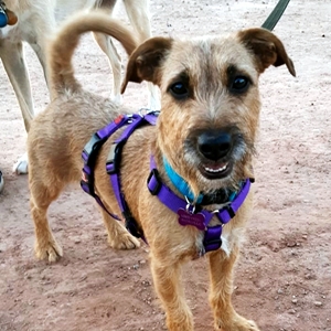 Damit Noah im Freilauf von den großen Hunden im Tierheim nicht überrannt wird, ist sie erstmal auf eine spanische Pflegestelle und diese beschreibt sie als eine sehr liebe Hündin, die sich auch mit den anderen Hunden der Pflegestelle versteht. Auch mit Kindern versteht Noah sich und fordert sie sehr gerne zum Rennen und toben auf. Leider hat Noah wohl bei ihren früheren Besitzern nie gelernt, auch mal alleine zu bleiben und daher fällt es ihr im Moment noch schwer. Aber wenn man es ihr langsam und mit viel Geduld zeigt, wird sie das schnell lernen. Denn Terrier sind schlaue Hunde.