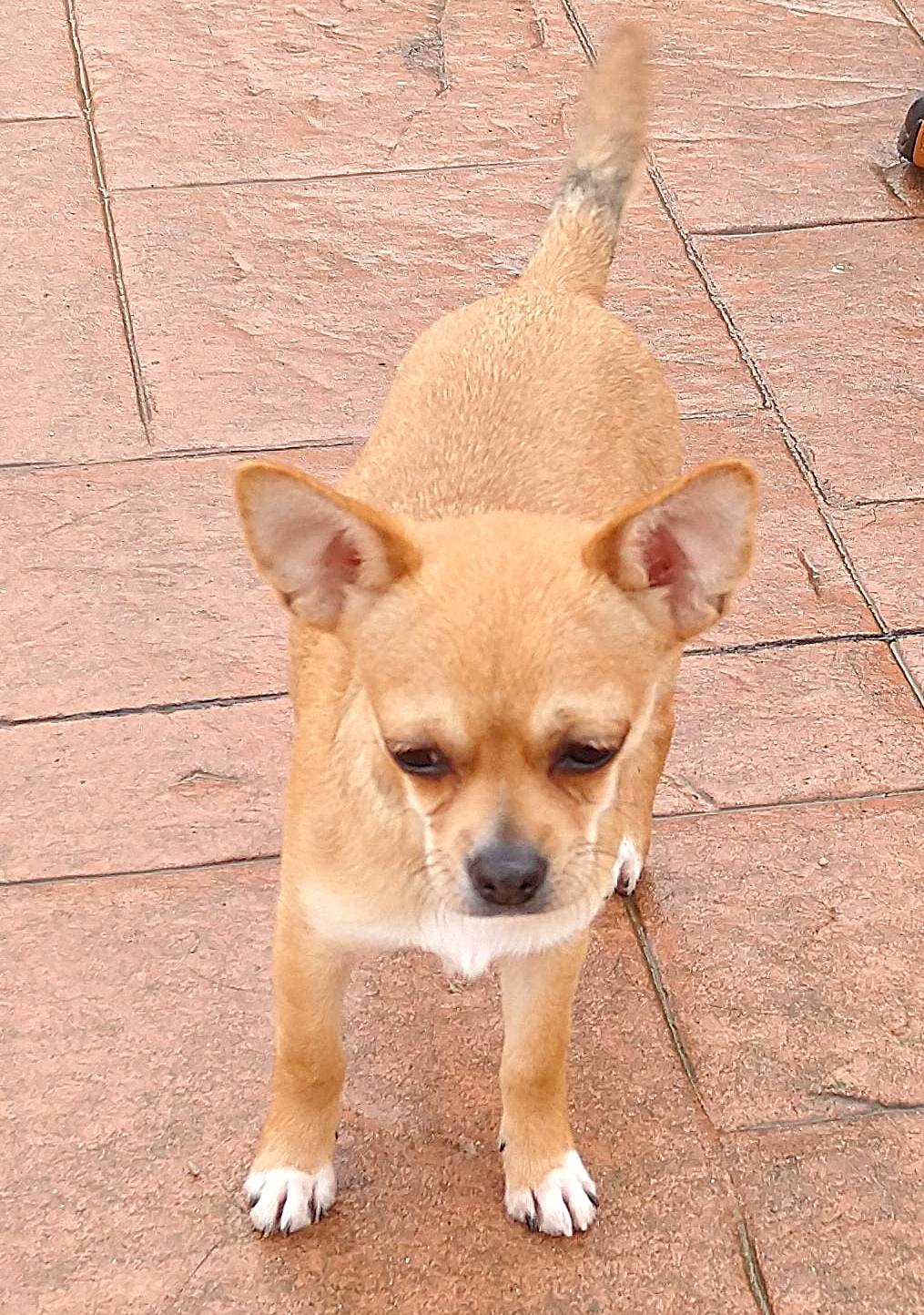 Welpe Pepe wurde ohne nachzudenken von einer Dame gekauft, die ihn ihrem Neffen geschenkt hat. Leider hatte sie versäumt, das mit den Eltern des Kindes abzusprechen. Nach Meinung der Familie passte Pepe nicht in ihren Alltag und so gaben sie ihn gleich wieder ab. Zum Glück wurde das kleine Kerlchen nicht zum Wanderpokal, sondern landete bei unseren spanischen Tierschutzkollegen.