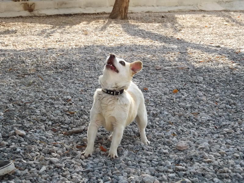Momentan sitzt sie mit einer Hündin und dem Cocker Teo in einem Zwinger.