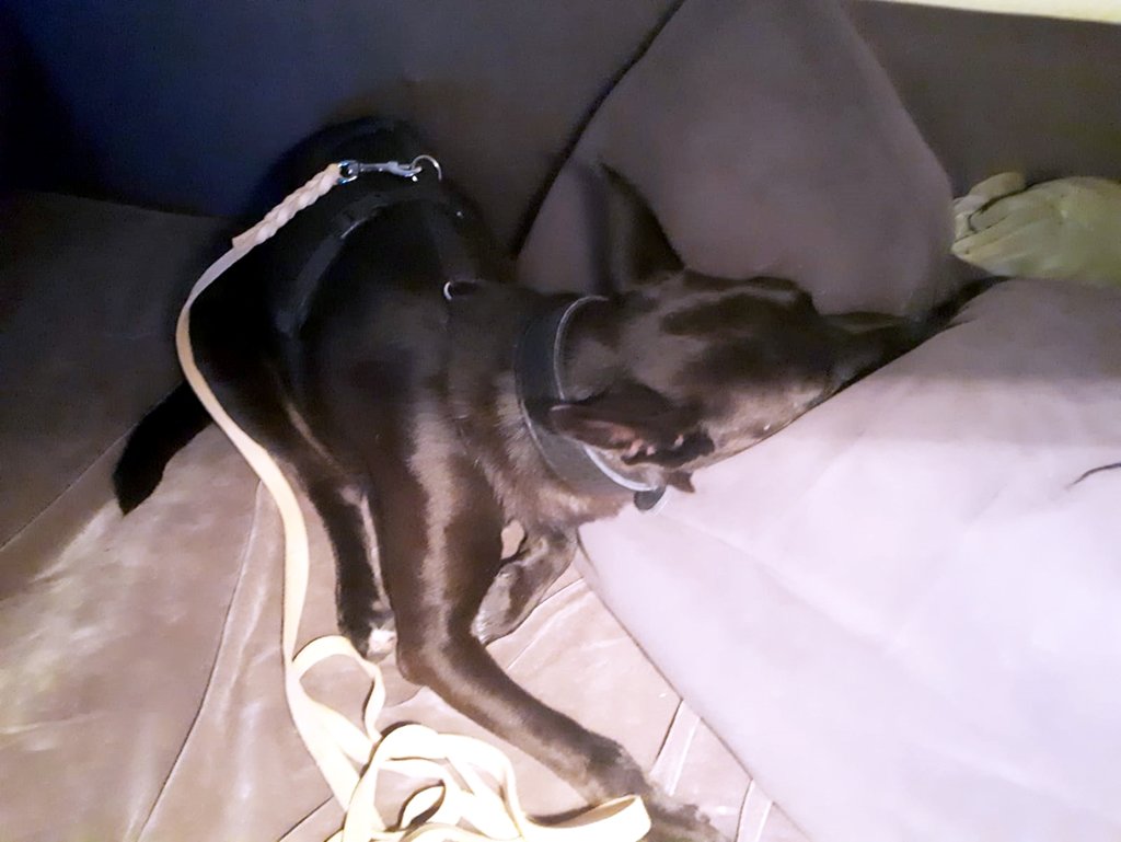 Im Haus ist sie ruhig, draussen zieht sie erst mal an der Leine, beruhigt sich aber, wenn man länger unterwegs ist.