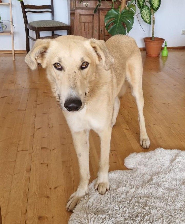 Für Rookie suchen wir ein Zuhause, wo gut mit ihm gearbeitet wird und wo seine Talente weiter gefördert werden. Da der Rüde noch recht jung und ungestüm, gleichzeitig aber auch ein ziemlicher Riese ist, braucht er standfeste Menschen, die ihm körperlich gewachsen sind und mit ihm weiterhin liebevoll-konsequent die Benimmregeln zuhause und unterwegs verfeinern. Ein vorhandener Ersthund wäre sicherlich von Vorteil, um ihn in sein neues Umfeld schnell zu integrieren.
