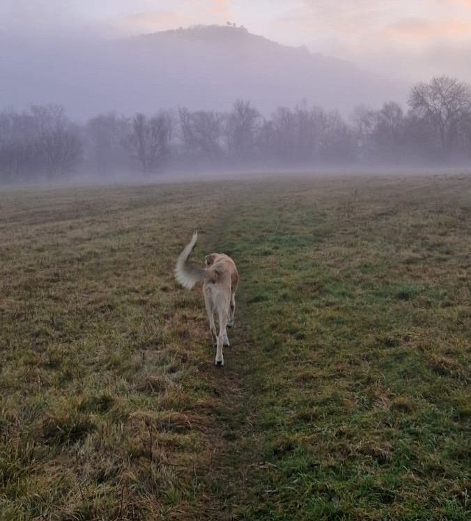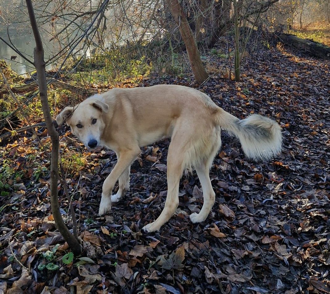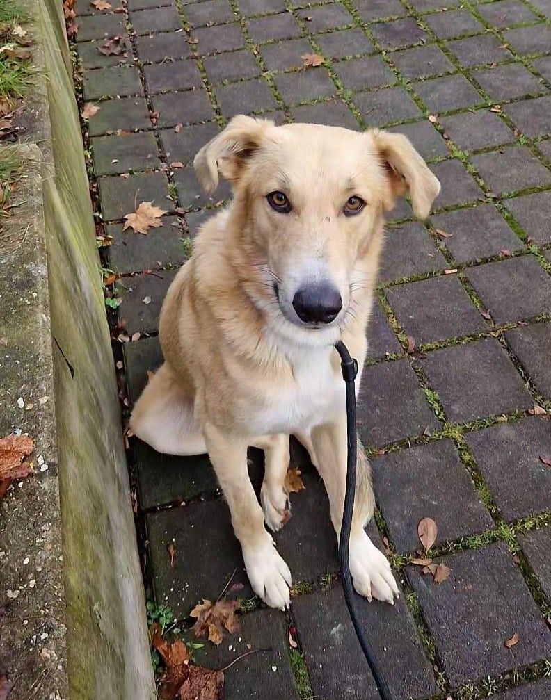 Rookie heißt jetzt Friedo. Er zeigt sich bislang von seiner besten Seite. Er läuft schon sehr gut an der Leine und auch am Fahrrad. Sein Körpergefühl ist ausbaufähig; er läuft mitunter in seinen Menschen, lässt sich aber sehr gut korrigieren. Er braucht keine laute Stimme, denn er reagiert schnell auf eine gewisse Bestimmtheit.Mit anderen Hunden ist Friedo sehr entspannt und lediglich neugierig.Jagdtrieb ist bislang kaum vorhanden, nur Tauben findet er manchmal spannend. Mit Kindern geht er sehr respektvoll um und mag gerne mit ihnen spielen.Das einzige Problem ist gegenwärtig, das Friedo nicht alleine sein mag. Wir arbeiten uns langsam vor, sind aber noch nicht über 10 Min. hinaus gekommen. Zum Glück ist er so ein Goldstück, dass er einfach überall mit hinkommen kann - egal ob in eine Lerngruppe oder zu einer Steuerberaterin.