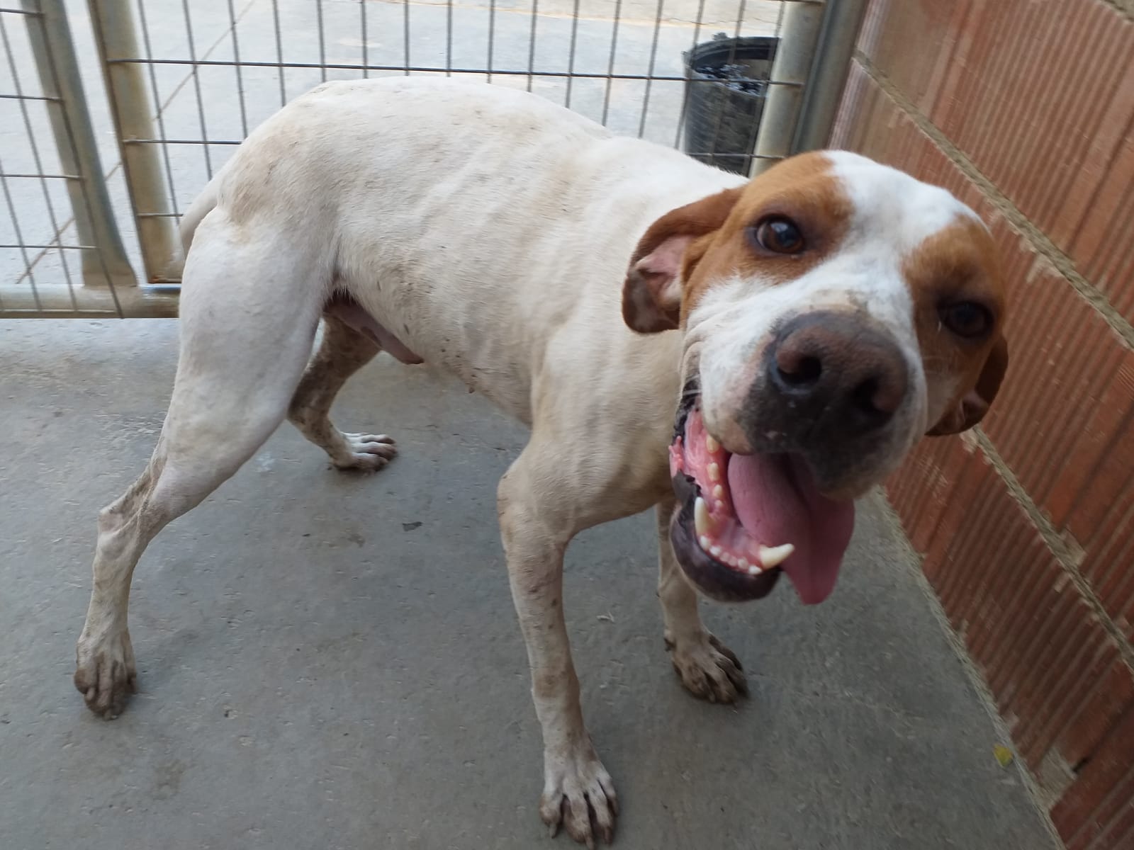 Pointer Sancho haben wir in einer spanischen Perrera entdeckt. Keiner interessierte sich für den sensiblen Rüden und Sancho begann sich in eine Zwingerecke zurückzuziehen und sich aufzugeben. Kurzerhand holten unsere spanischen Kollegen ihn in ihre kleine Auffangstation nach Sahagun. Auch hier tat er sich anfangs schwer, aber nach und nach fasste er Vertrauen zu seinem Pfleger und mittlerweile steht die Rute nicht mehr still, wenn er Josu auch nur sieht!