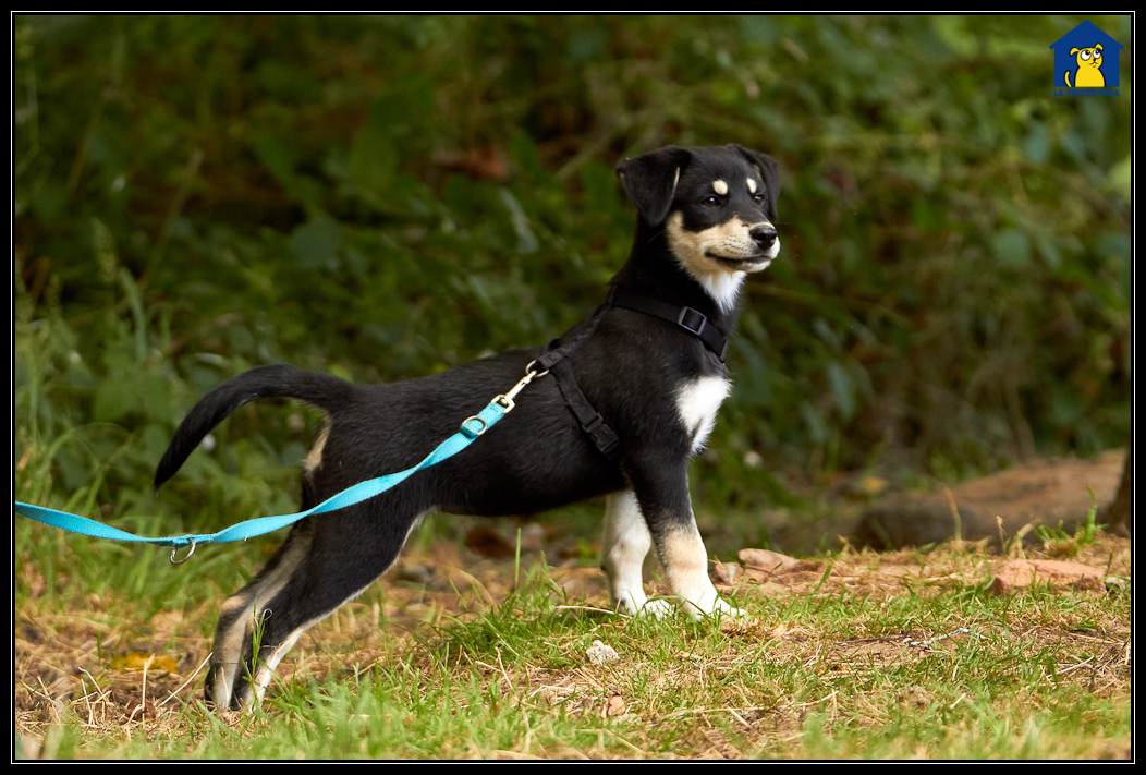 Nun sind die beiden kleinen Hundedamen in Sicherheit, werden gut versorgt und können schon verschiedene Erfahrungen sammeln. Sie lernen, dass es regelmäßig Futter gibt, dass Menschen meistens sehr nett sind und andere Hunde auch und dass Spaziergänge an der Leine total spannend sind.