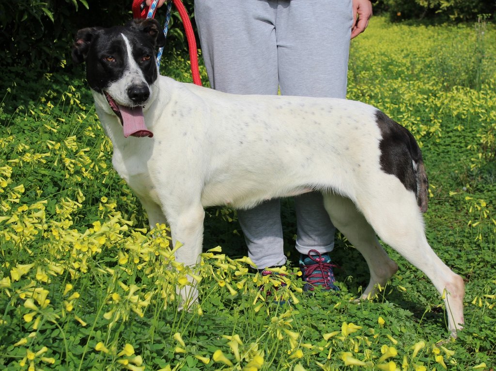 Die schöne Sora ist mit ihren langen Beinen dem Tod von der Schippe gesprungen. Über ein Jahr lang saß sie in einer spanischen Tötungsstation und hatte Glück, dass es sie nicht erwischt hat. Stattdessen wurde sie von Tierschützern dort heraus geholt und lebt nun im sicheren Refugium. Ein Andenken aus ihrer Vergangenheit hat sie allerdings noch: einen Teil ihres Schwanzes hat sie eingebüßt, als ein anderer Hund in der Tötungsstation sie biss.