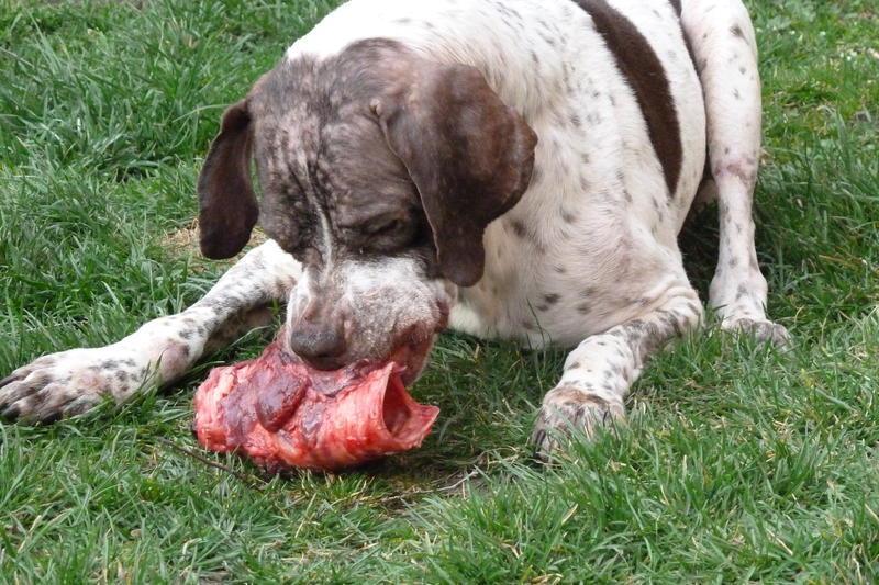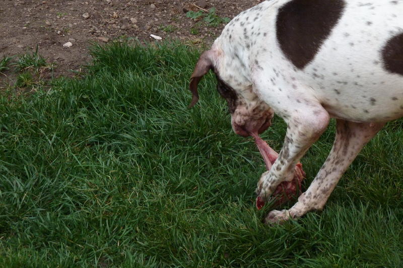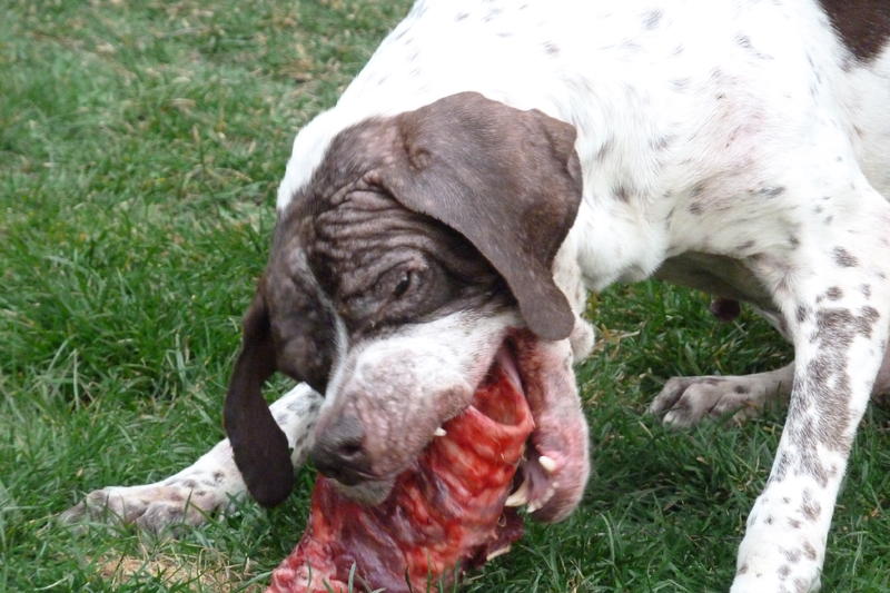in anbetracht seiner gewichtsentwicklung habe ich tarzan eine ration gestrichen. es gibt nun nur noch 2x futter. so ganz versteht der arme bub das aber nun noch nicht und hat wohl sorge, dass die schlechten zeiten wieder kommen und so sieht ein zufriedener tarzan nach der vernichtung seiner barfportion aus